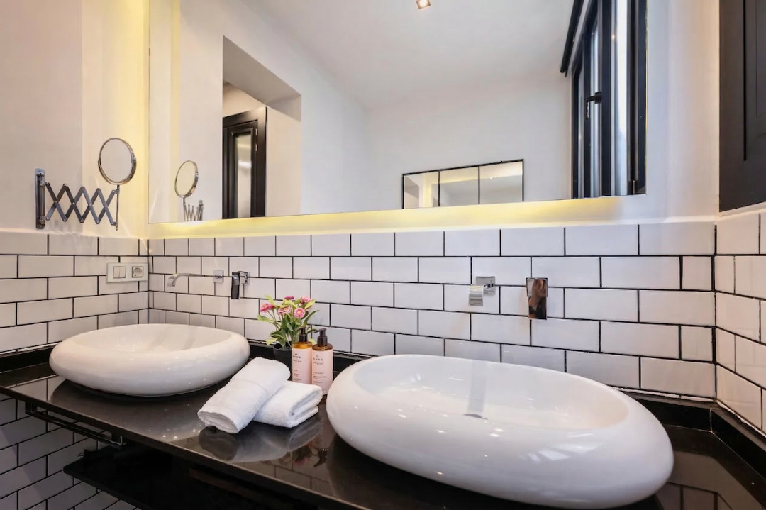 Premium amenities include free WiFi, cable TV, high-end toiletries, hotel beds and linens, and a Nespresso machine.