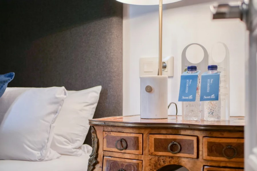 Premium amenities include free WiFi, cable TV, high-end toiletries, hotel beds and linens.