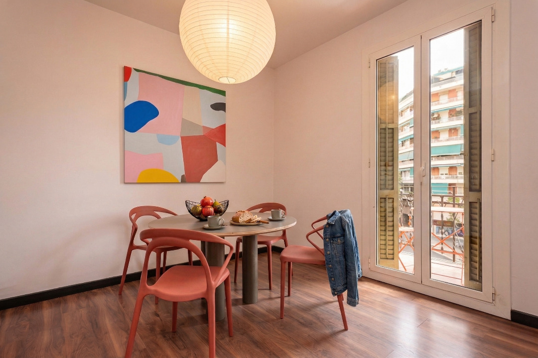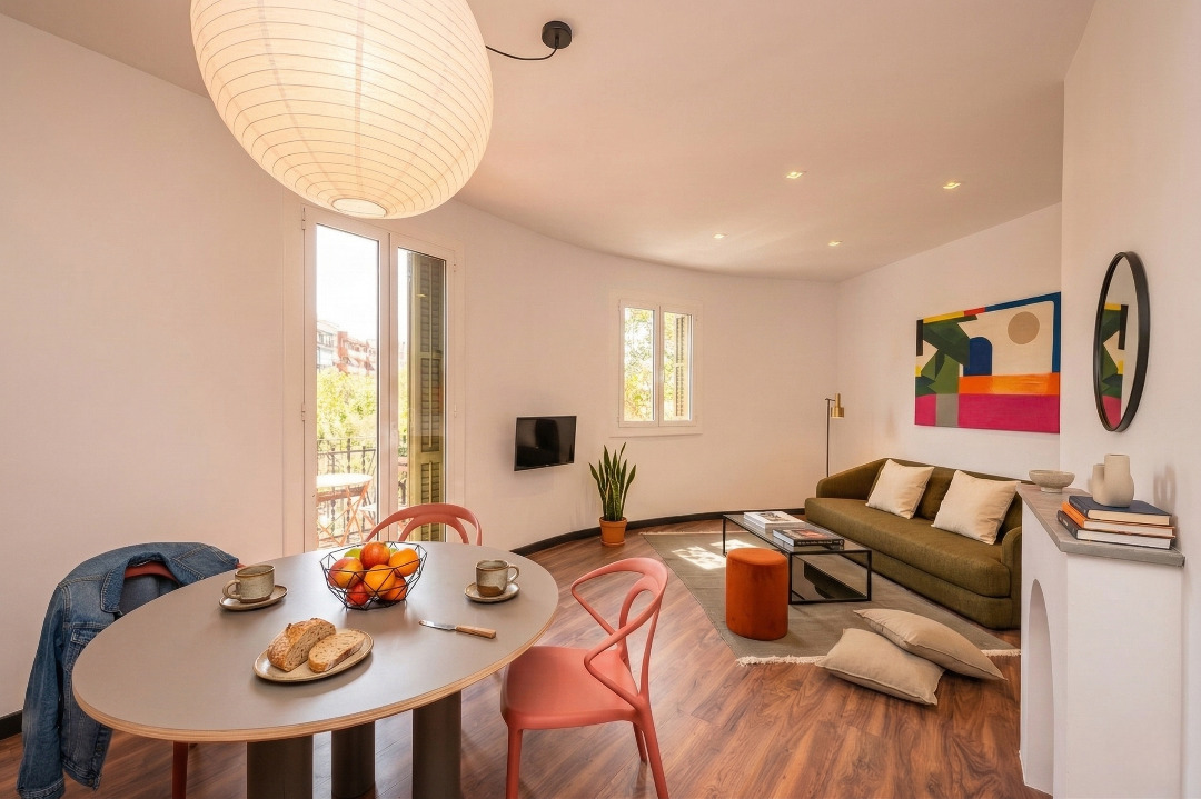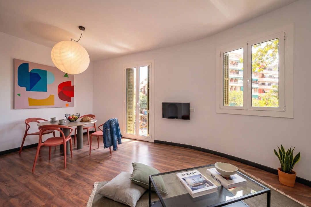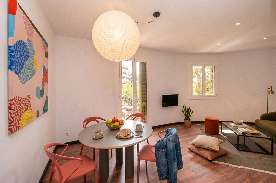 This trendy three-bedroom apartment invites you to live in Barcelona like a true local.