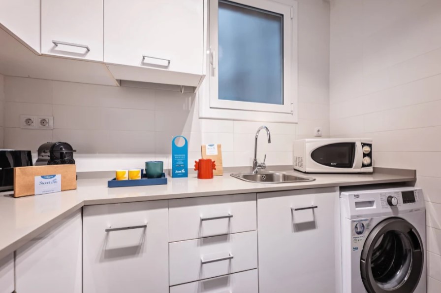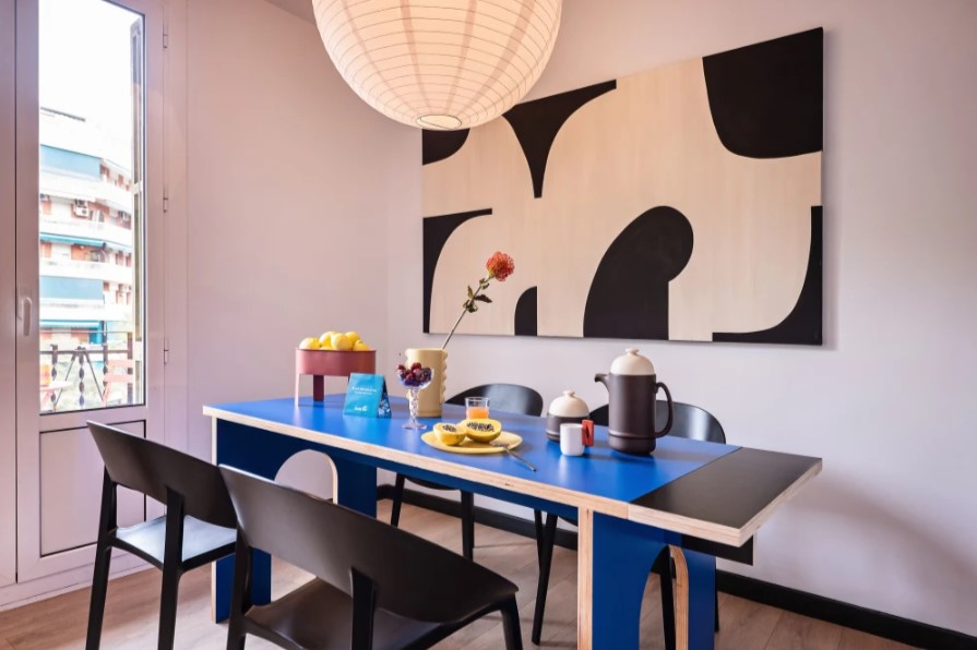 The trendy three-bedroom apartment invites you to live in Barcelona like a true local.