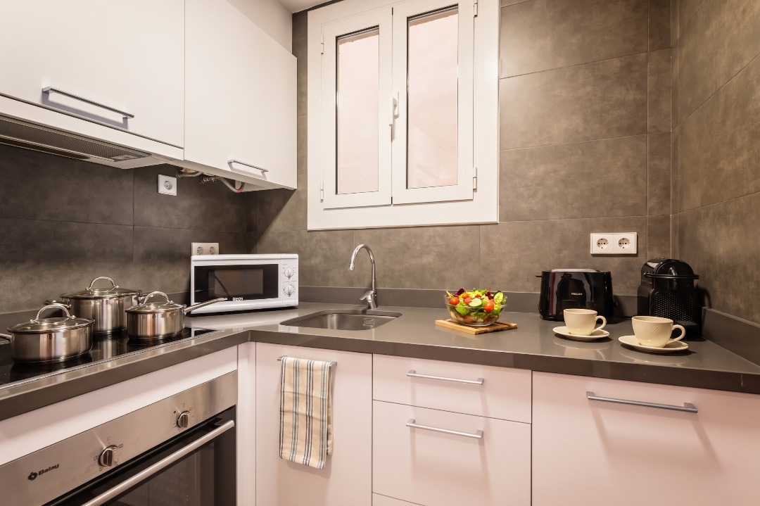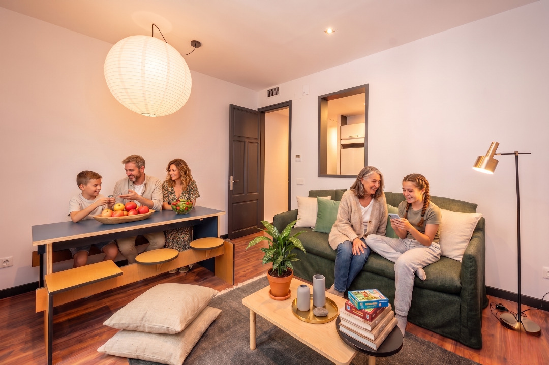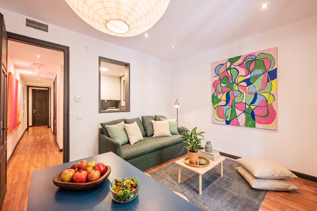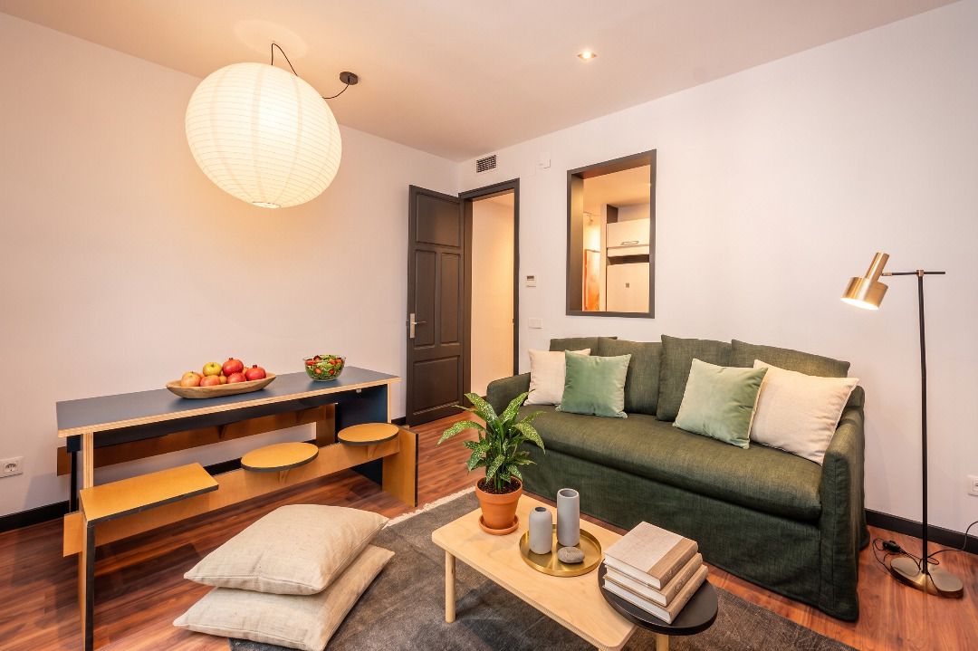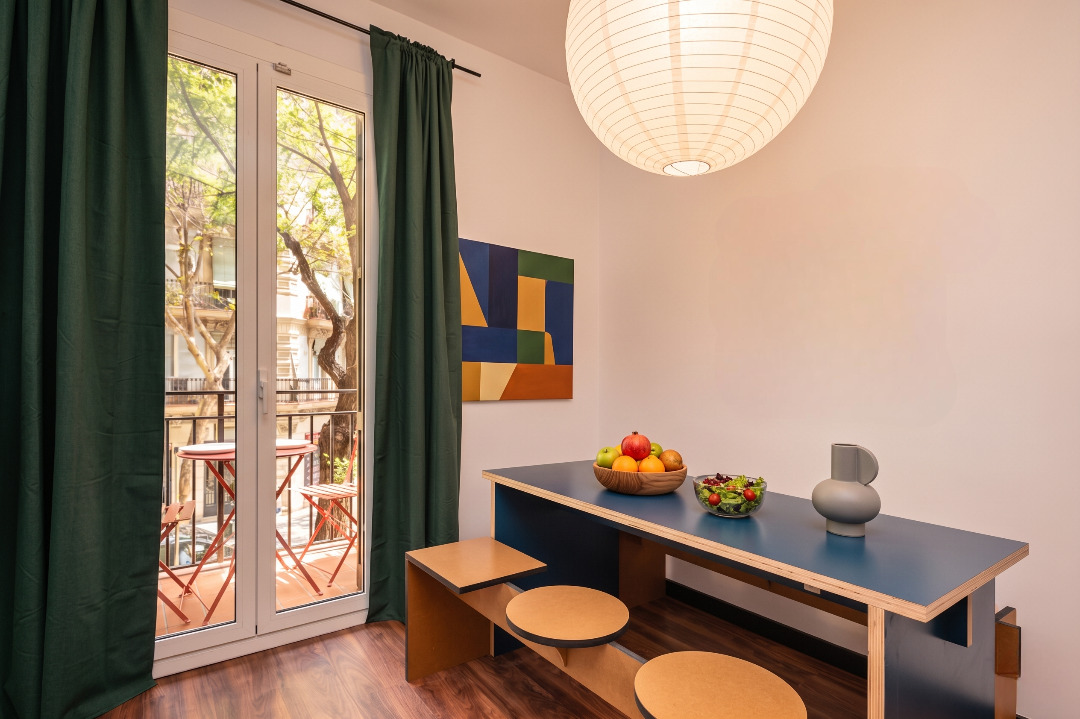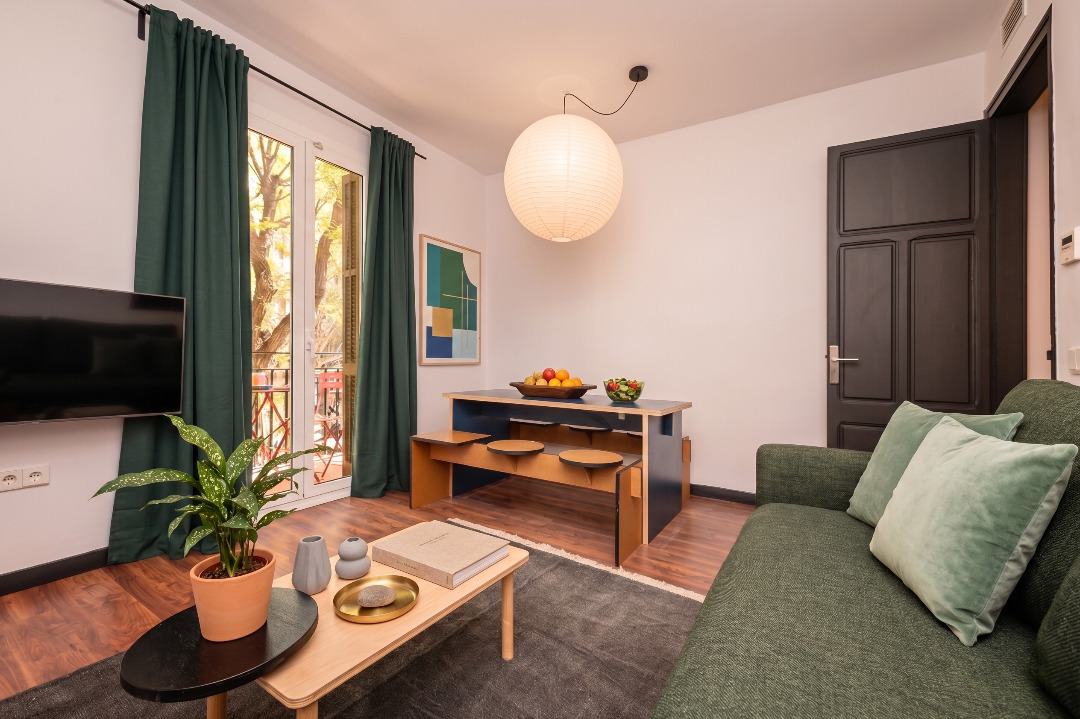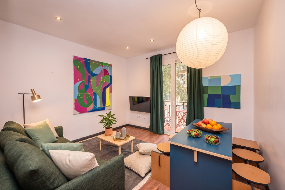 The trendy three-bedroom apartment invites you to live in Barcelona like a true local.