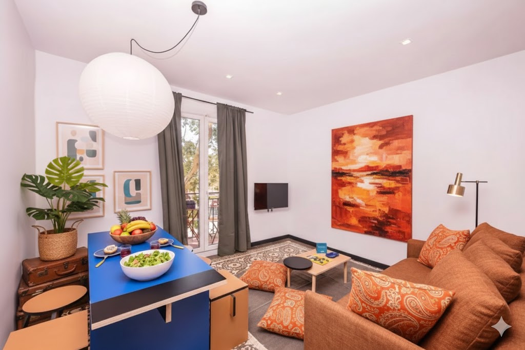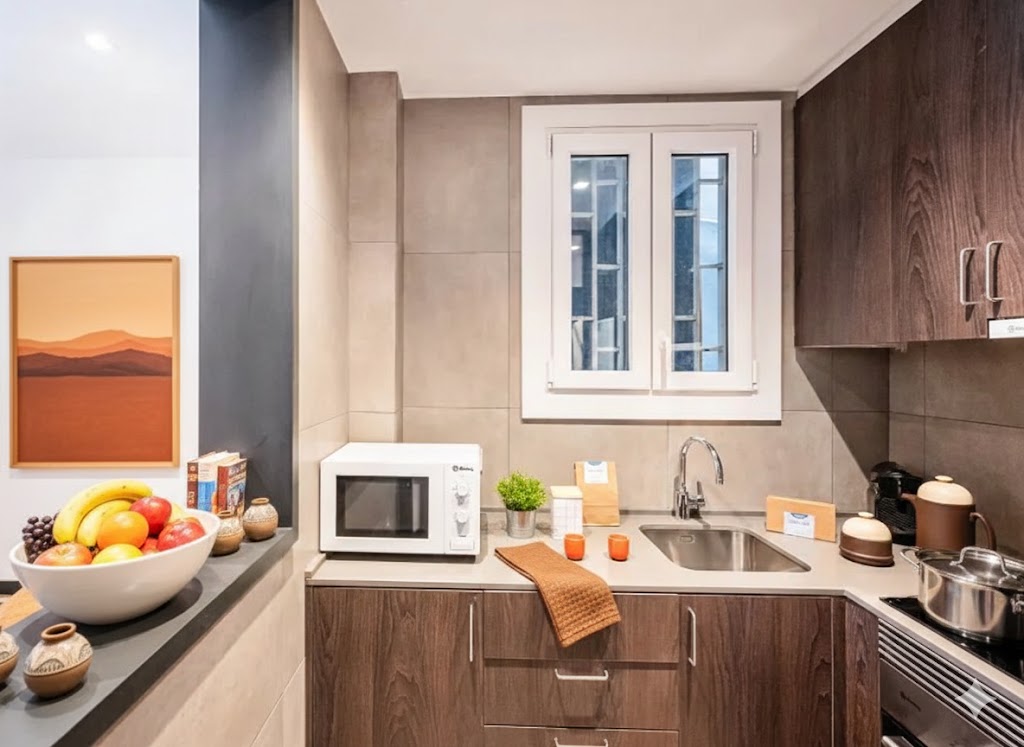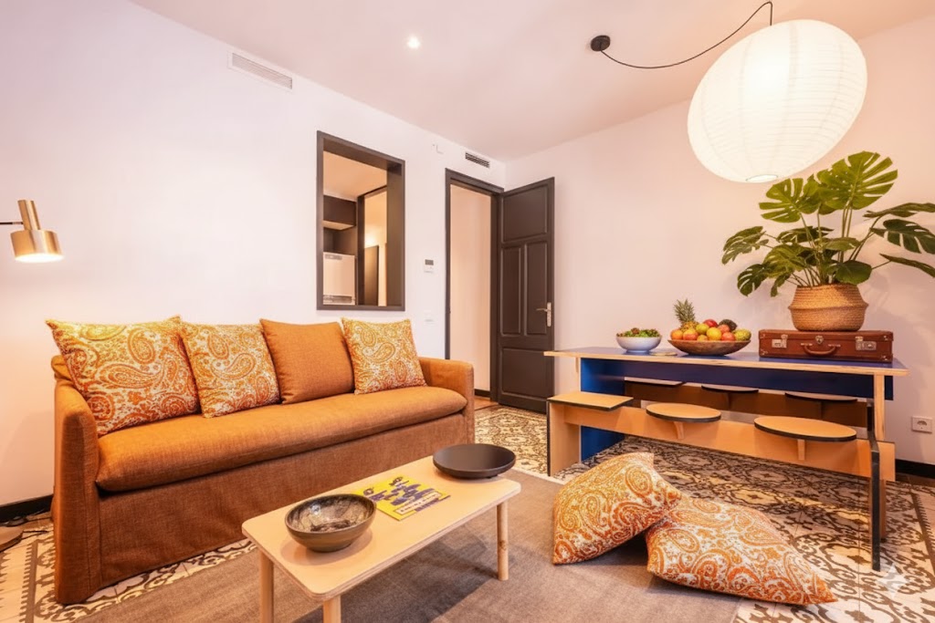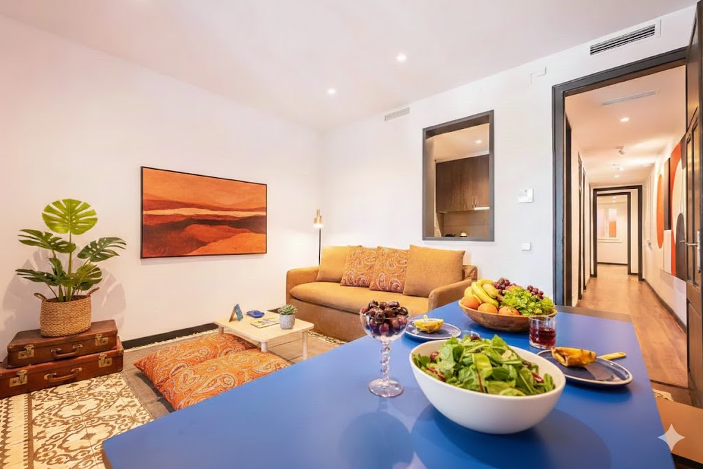The trendy three-bedroom apartment invites you to live in Barcelona like a true local.