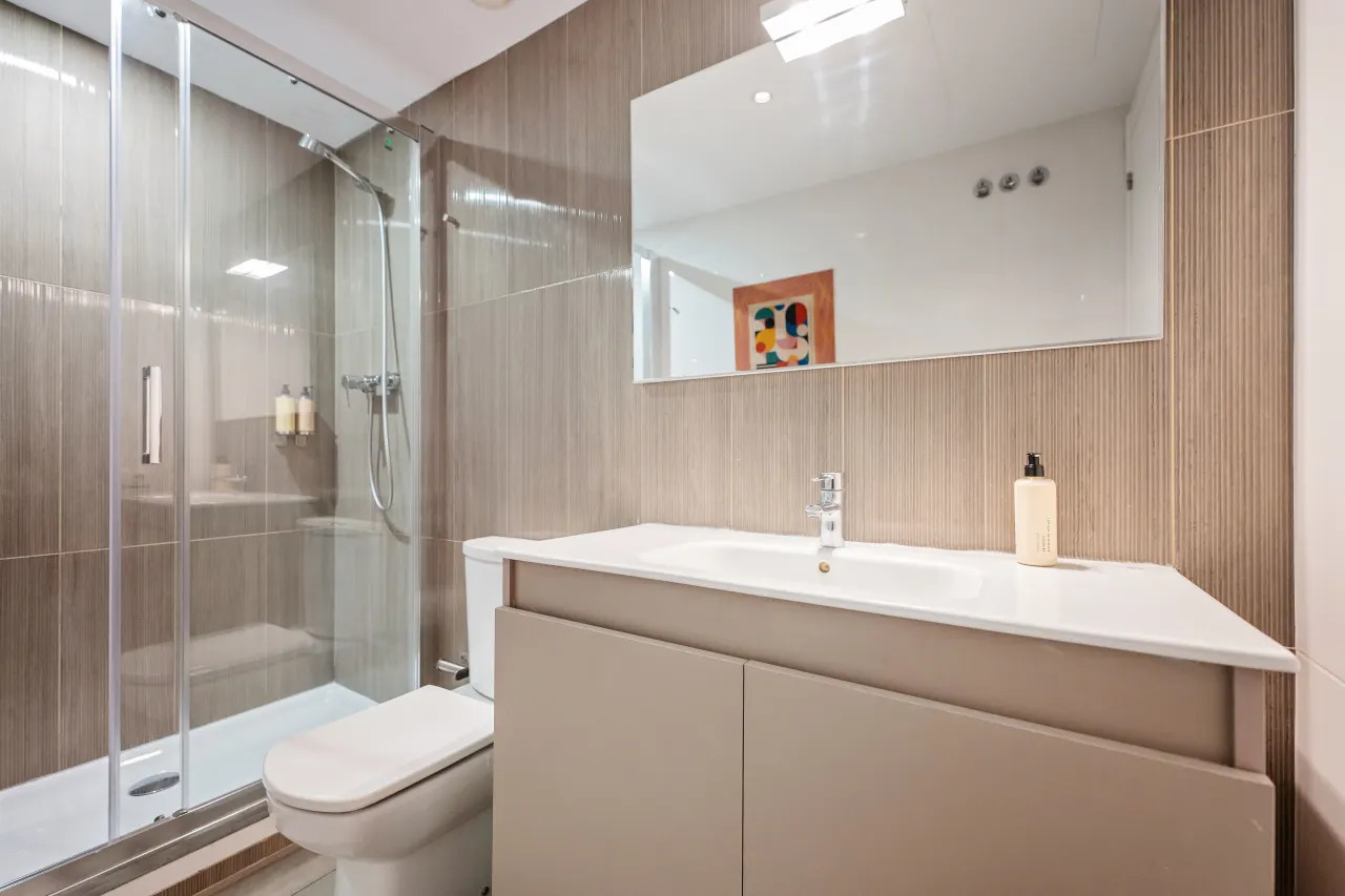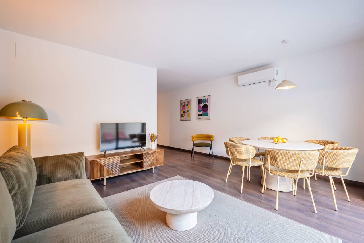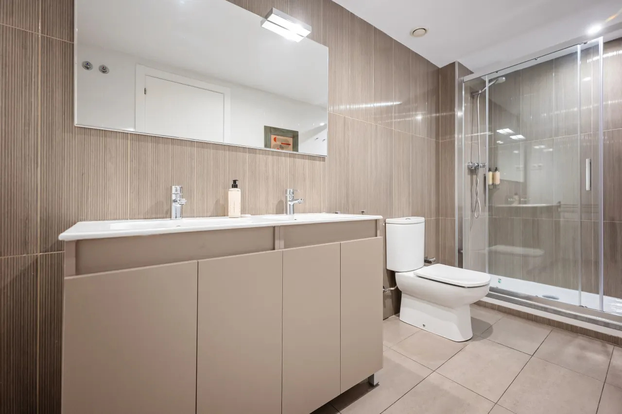 This spacious 3 bedroom apartment with 3 bathrooms offers a warm and inviting ambience, with ample natural light from the windows. Unwind with a refreshing drink or soak up the sun on the large patio after a day of touring. The kitchen is fully equipped and great for cooking family meals. Situated in the heart of Barcelona, many of the city's famous landmarks like the Sagrada Familia and Plaza Catalunya are within walking distance.