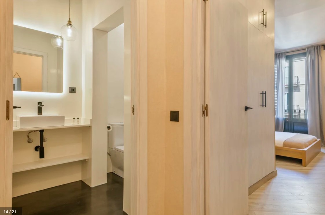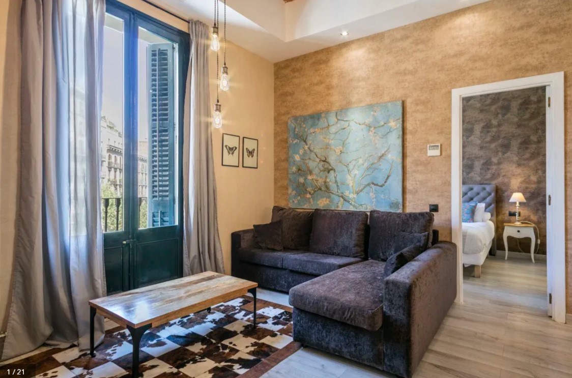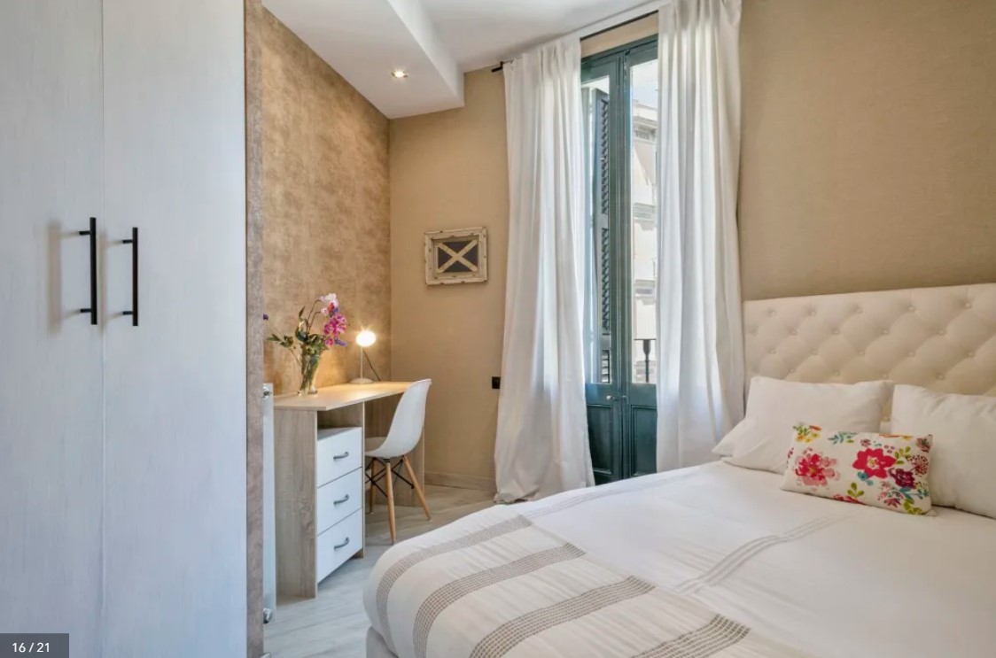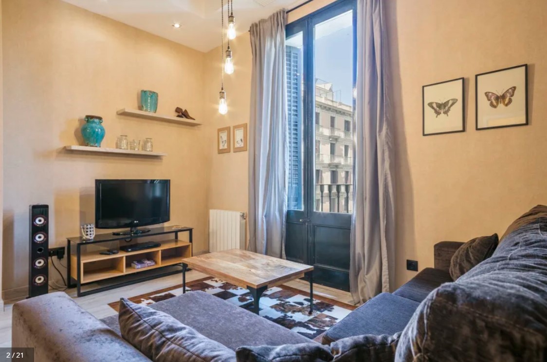 The recently renovated 3 bedroom apartment with 2 bathrooms has a welcoming vibe. The windows are letting all the light inside. The fully equipped kitchen will be ideal to prepare a meal for the whole family. After a touring day, you will love to enjoy a fresh drink on the furnished balcony. The large beds will offer you the best sleep on your vacation. Located in the heart of Barcelona you will find most of the city landmarks within walking distance such as Plaza Catalunya.