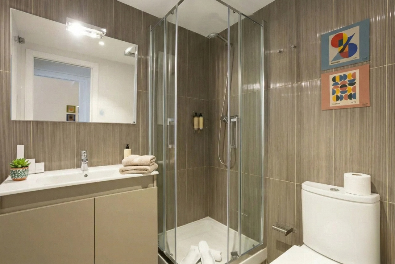 Experience the best of Barcelona from this modern and spacious two-bedroom apartment, perfectly situated in the city's lively center. Flooded with natural light and elegantly designed, it offers a blend of style and comfort for an unforgettable stay.