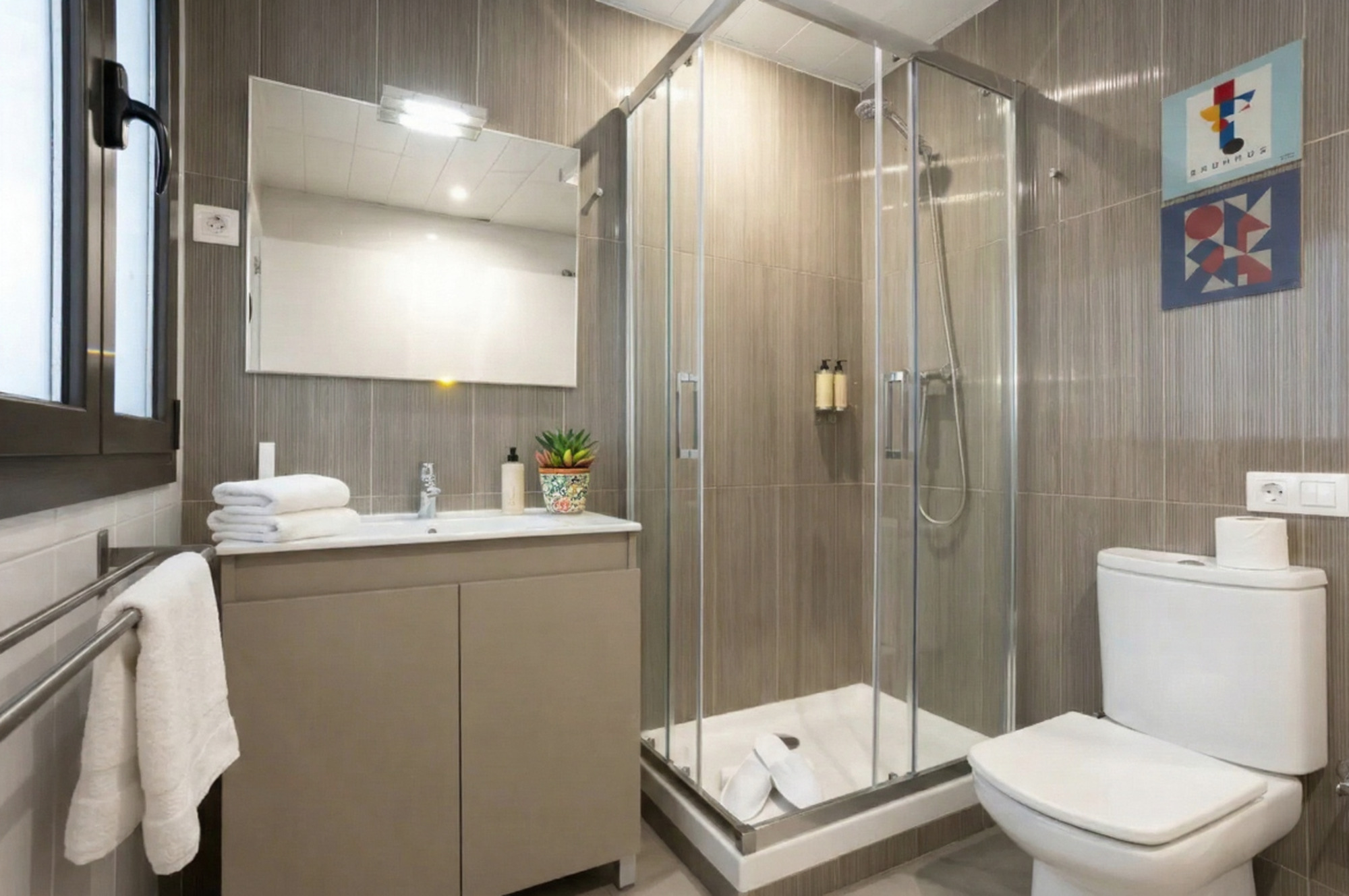 Start your morning with coffee on the private balcony before heading out to explore nearby landmarks like Sagrada Familia and Plaza Catalunya, all within walking distance. After a day of sightseeing, unwind with a drink or prepare a meal in the fully equipped kitchen.