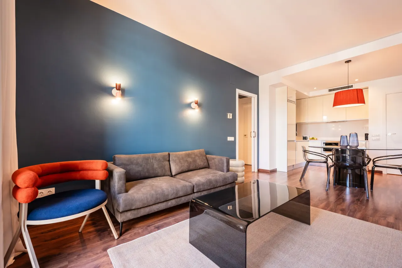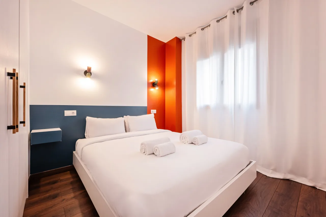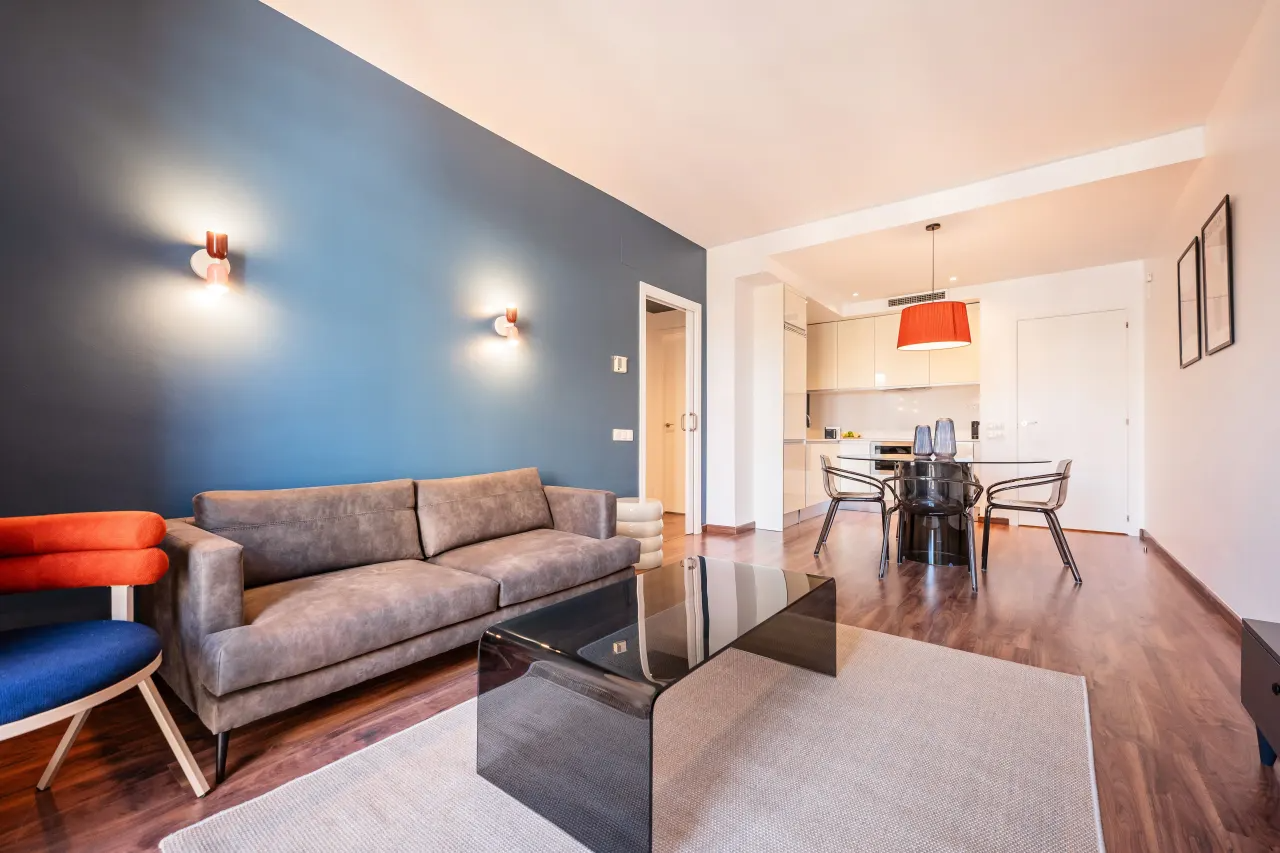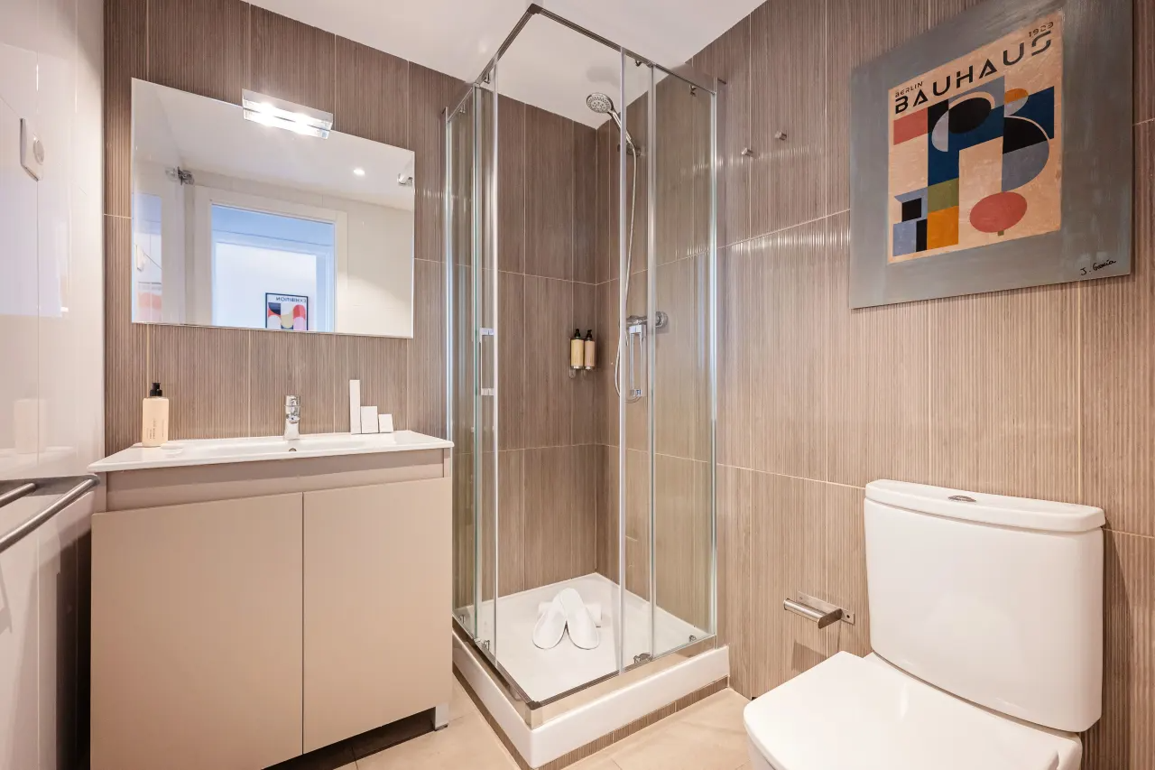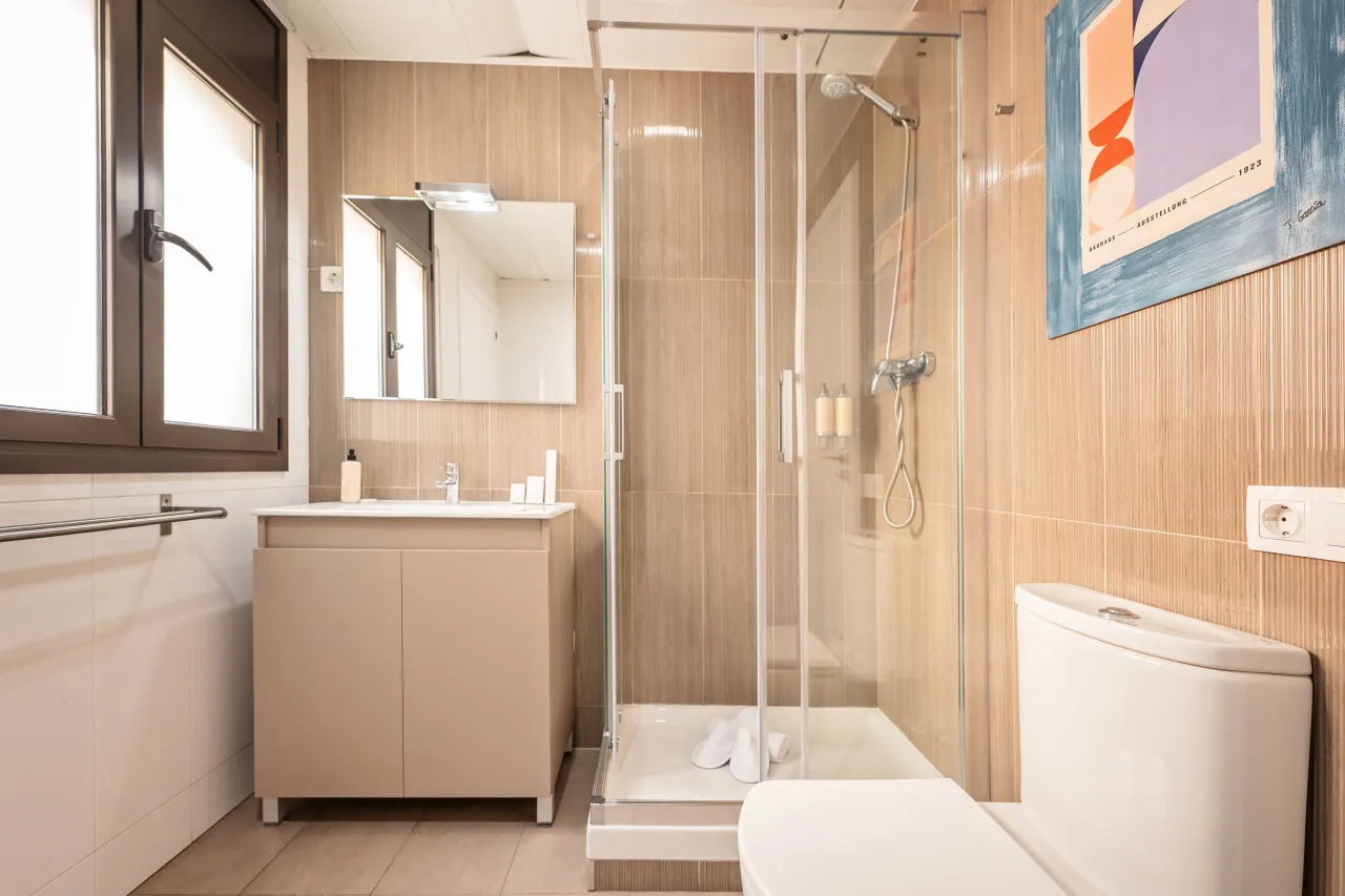 This spacious 2 bedroom apartment with 2 bathrooms offers a warm and inviting ambience, with ample natural light from the windows. Unwind with a refreshing drink or soak up the sun on the large patio after a day of touring. The kitchen is fully equipped and great for cooking family meals. Situated in the heart of Barcelona, many of the city's famous landmarks like the Sagrada Familia and Plaza Catalunya are within walking distance.