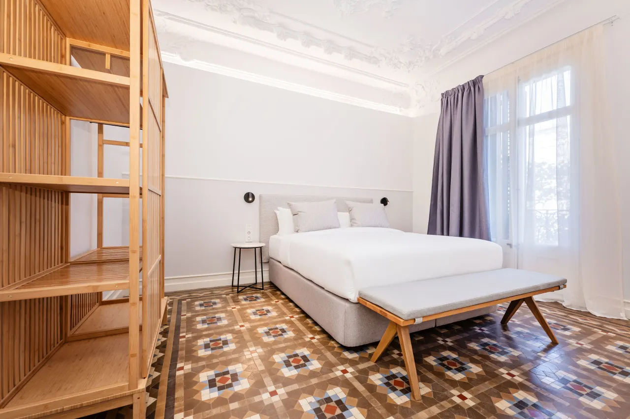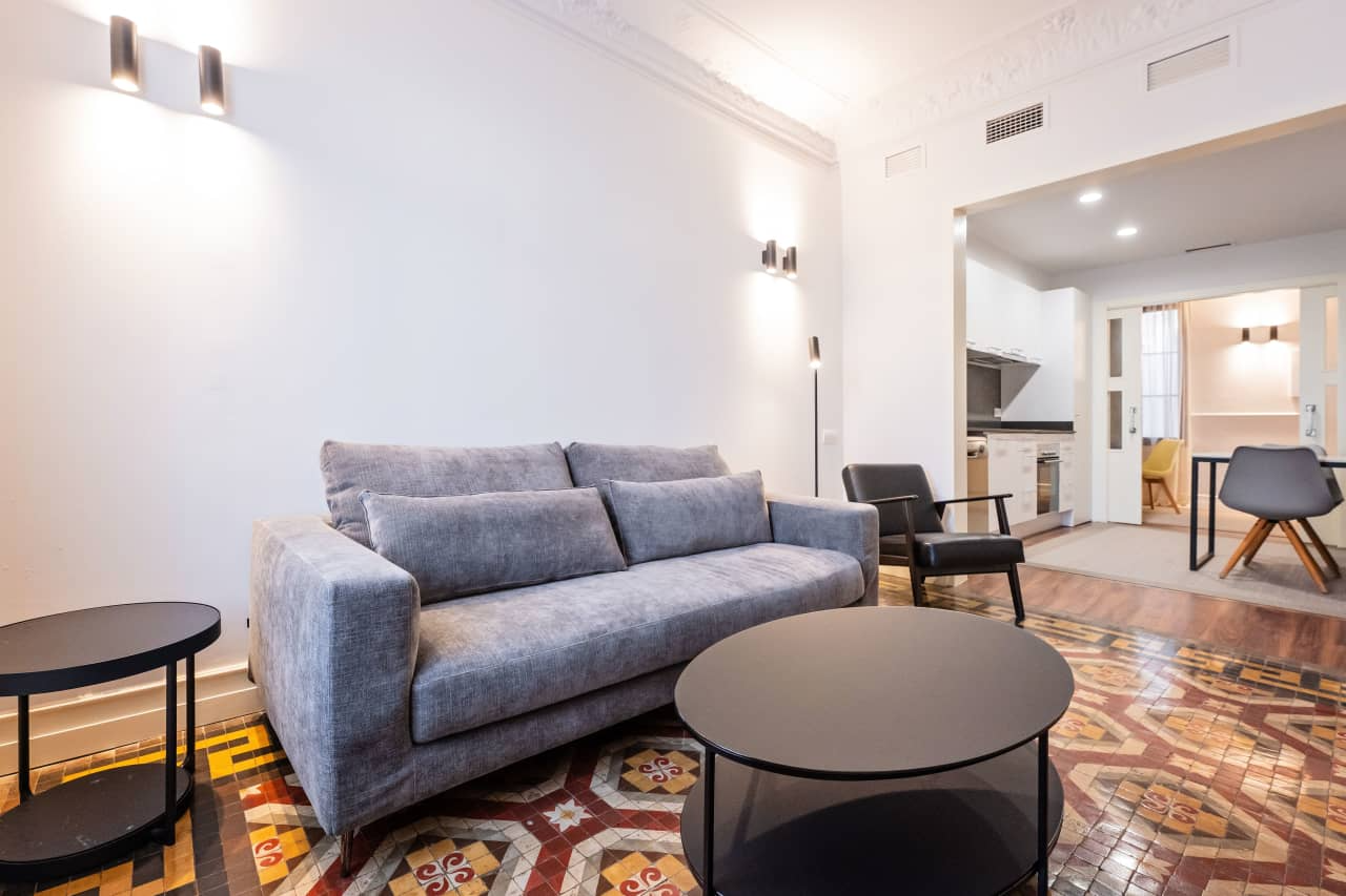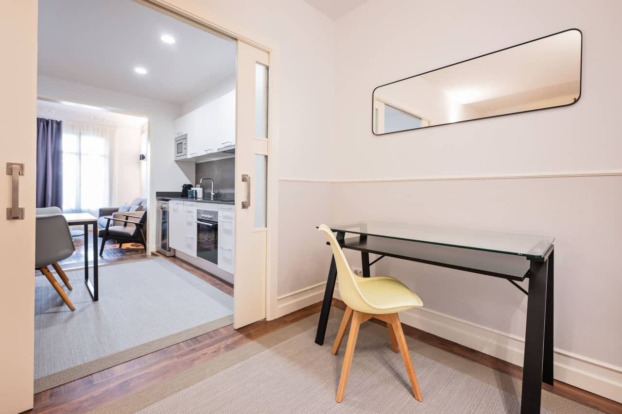 The Gran Via two-bedroom Acomodis apartment invites you to experience life like a true local. Recently redesigned by our talented local interior designer, this charming space will make you feel right at home. The decor and carefully chosen accessories beautifully reflect the unique characteristics of the area. The fully equipped kitchen is perfect for whipping up a quick snack after a day of exploring or for honing your Spanish cooking skills.