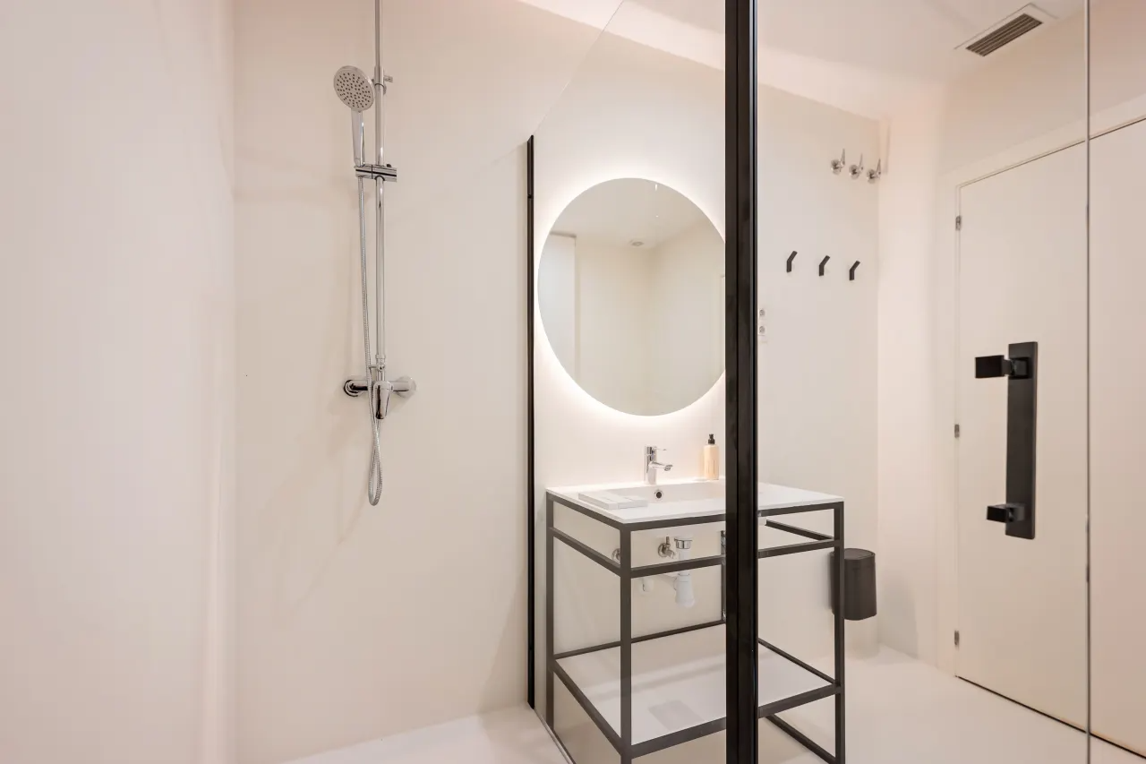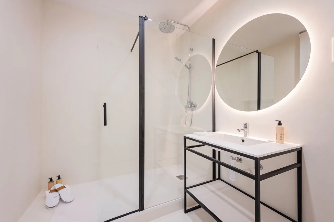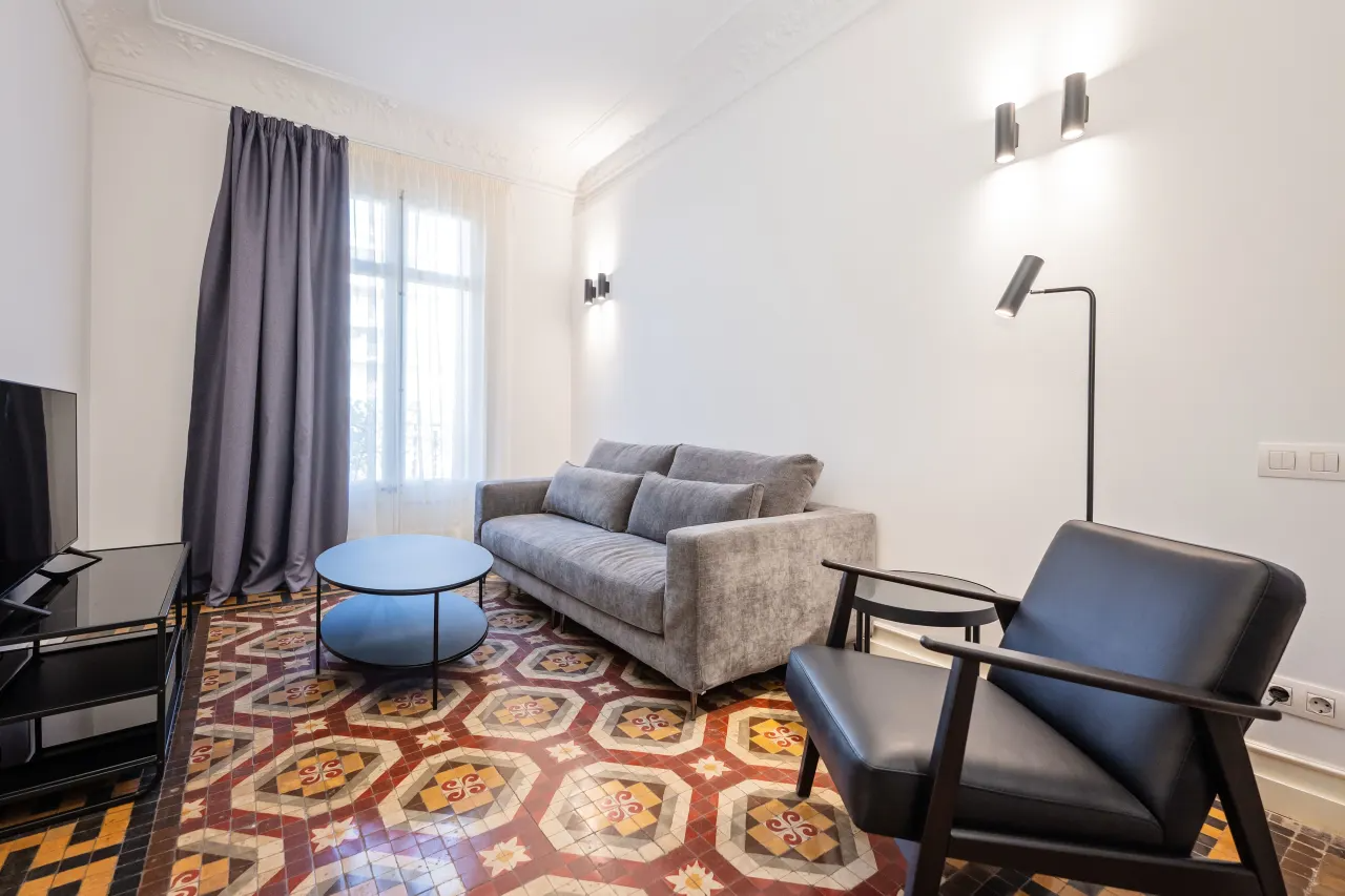 The Gran Via two-bedroom Acomodis apartment invites you to experience life like a true local. Recently redesigned by our talented local interior designer, this charming space will make you feel right at home. The decor and carefully chosen accessories beautifully reflect the unique characteristics of the area. The fully equipped kitchen is perfect for whipping up a quick snack after a day of exploring or for honing your Spanish cooking skills.
