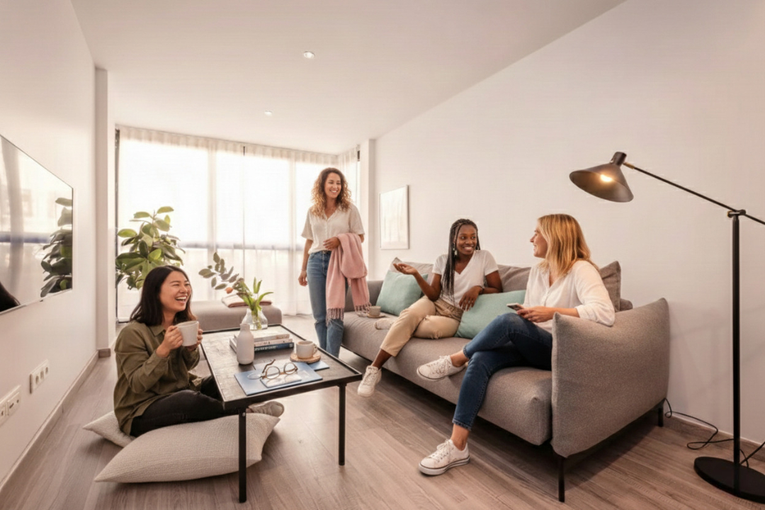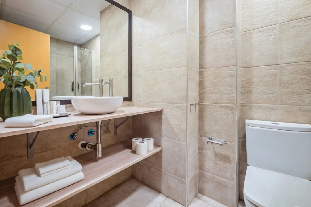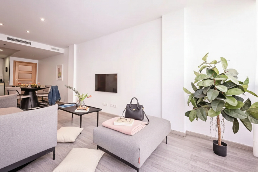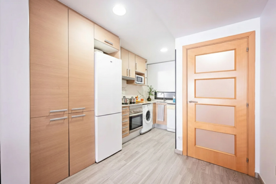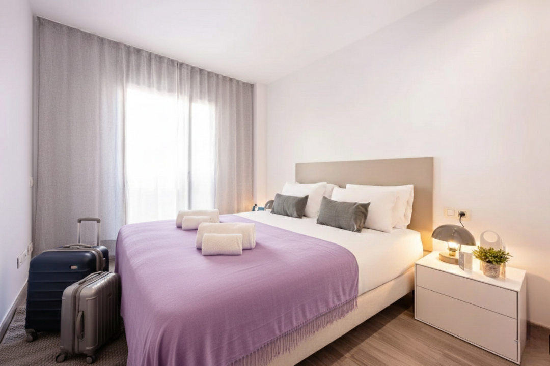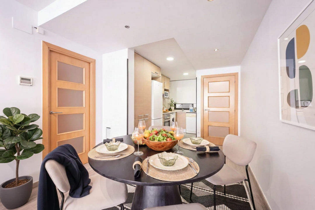 This delightful two-bedroom Acomodis apartment offers a cozy and inviting atmosphere, bathed in natural light. The fully equipped kitchen is ideal for cooking family meals, making it a fantastic option for both short and extended stays.
