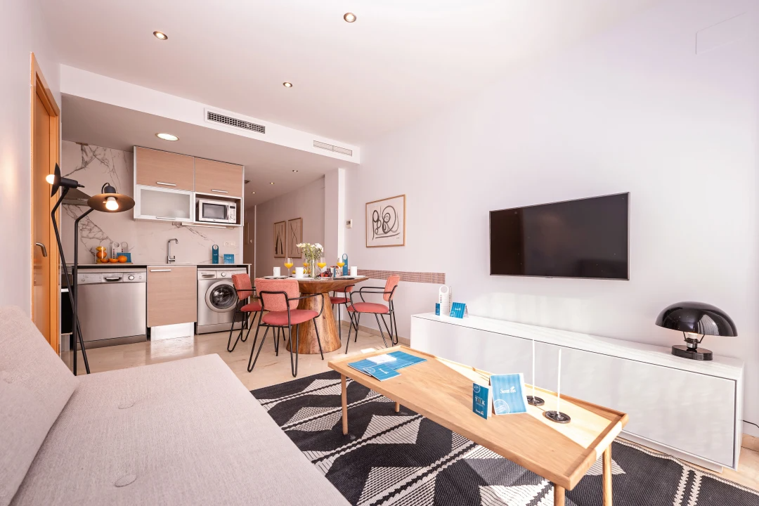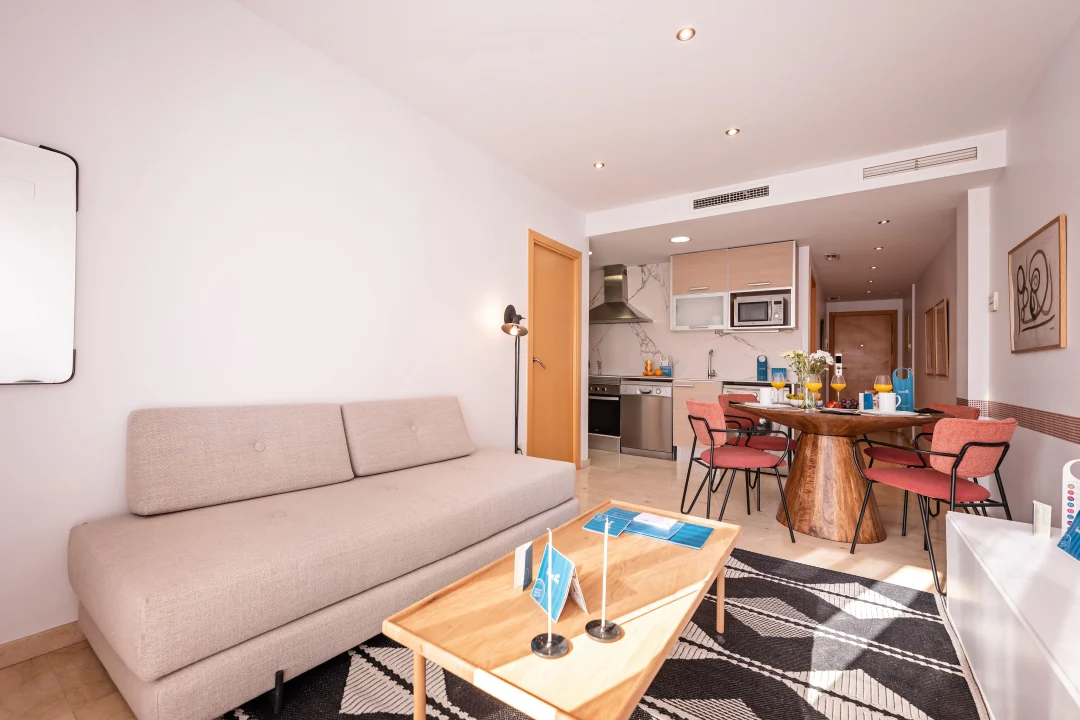 Located in the heart of Barcelona, the apartment is just a short walk from Parc Joan Miró and Plaça d’Espanya, offering easy access to top attractions, dining, and shopping.