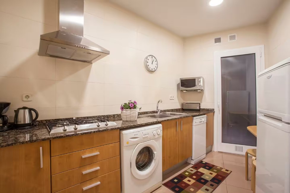 - Kettle, Gas stove, Traditional coffe maker, Traditional Kettle, Refrigerator, Dishwasher, Microwave, Toaster