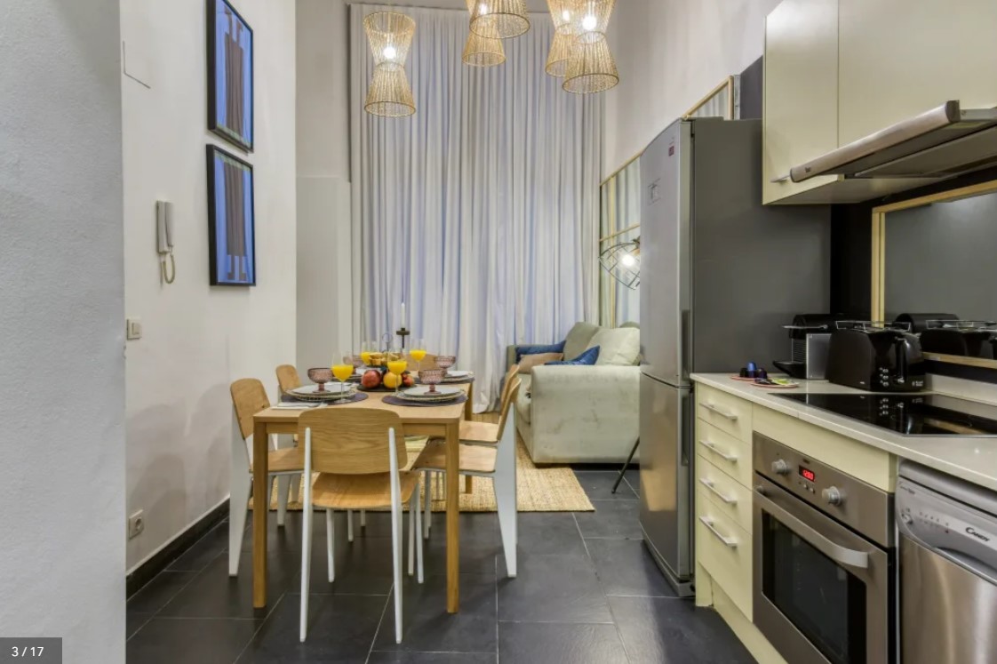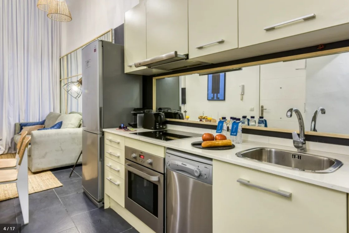 Large windows and high ceilings give the apartment an extra roomy vibe. You will love cooking a spicy Spanish meal in the chic modern kitchen or relaxing in the cozy living room with a glass of local wine after a long day of exploring the area’s local attractions.