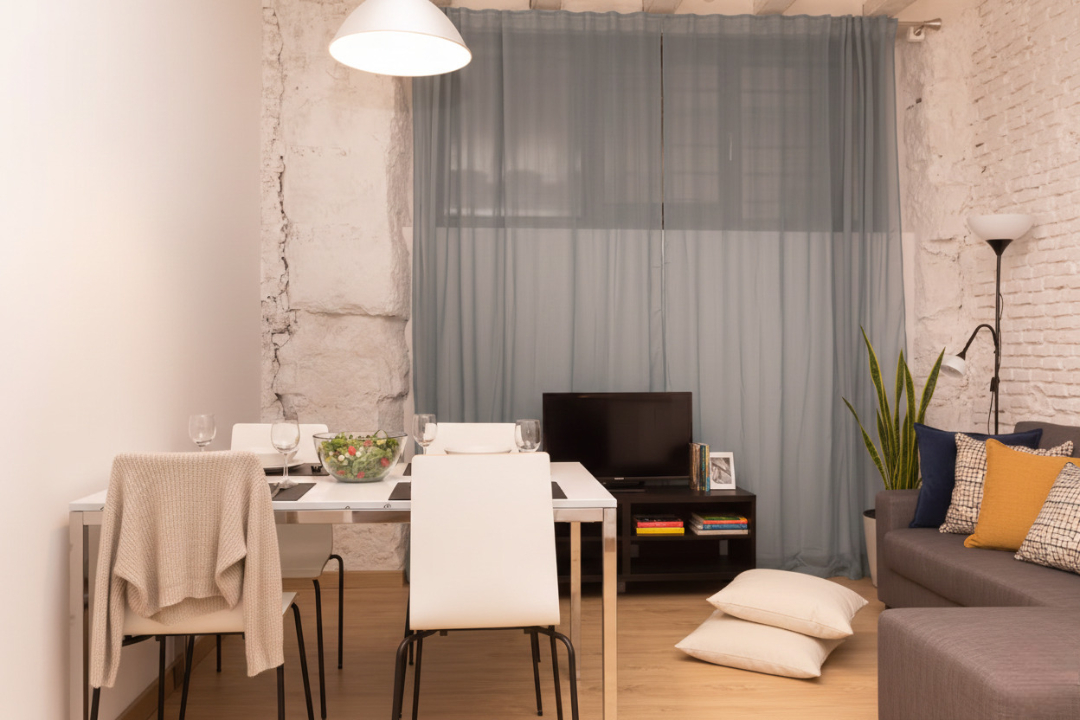 The apartment can accommodate couples, groups or families of up to four members. It is located in a traditional and charming brick building on Las Ramblas. You can walk every day through the pedestrian crossing of the area, enjoy the vendors, visit the Boqueria Market, walk along the Barri Gòtic and visit the Columbus Monument. Enjoy our city!