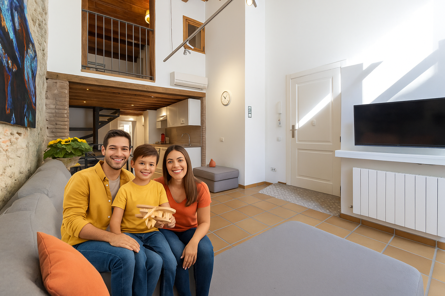 Each bright, spacious, open-plan apartment at "ACOMODIS" has high ceilings with exposed wooden beams, tile floors and stylish décor. The living area has a sofa and a kitchen area with microwave and fridge. Free Wi-Fi is included.