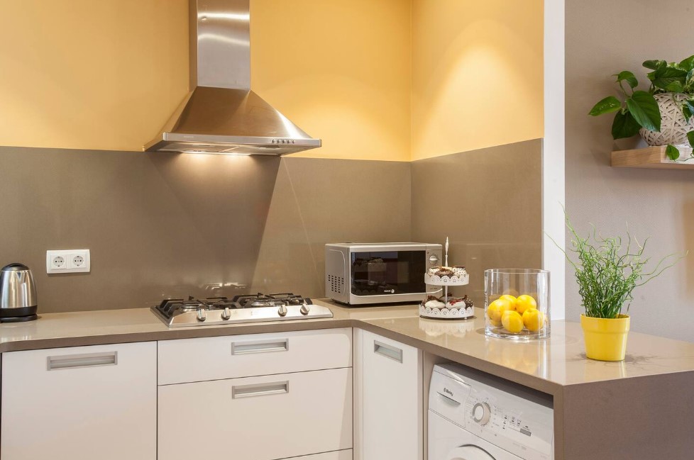 - Hervidor de agua (Kettle), Cocina a gas, Cafetera tradicional, Tetera tradicional, Nevera, Lavavajillas, Microondas, Tostadora