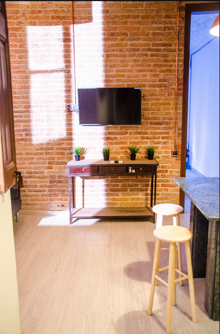 La decoración del ambiente está inspirada en fábricas antiguas. En el interior conseguirás espacios de techo alto y paredes rústicas que crean un ambiente único. Además, posee gran luminosidad gracias a la luz natural que ingresa a través del balcón.