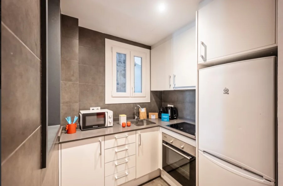 - Cocina vitrocerámica, Congelador, Nevera, Microondas, Tostadora, Cafetera eléctrica