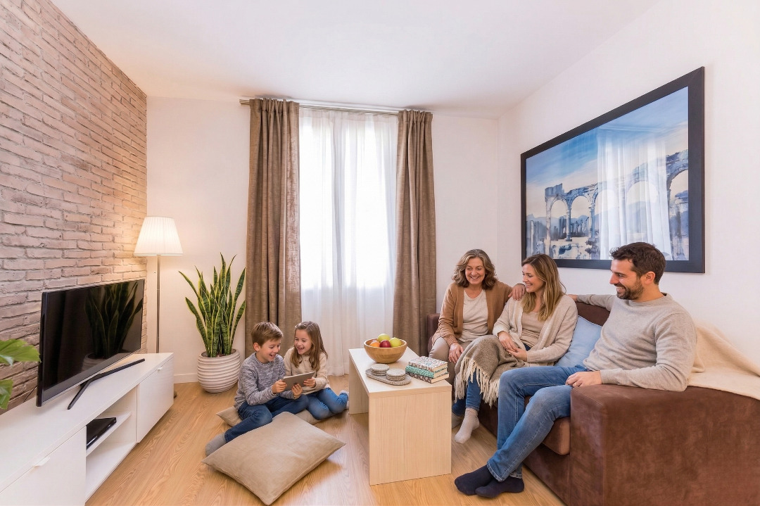 Ce joli appartement de 3 chambres avec 2 salles de bains est baigné de lumière naturelle. Le mobilier confortable et le beau mélange de couleurs offrent au lieu un esprit accueillant et relaxant.