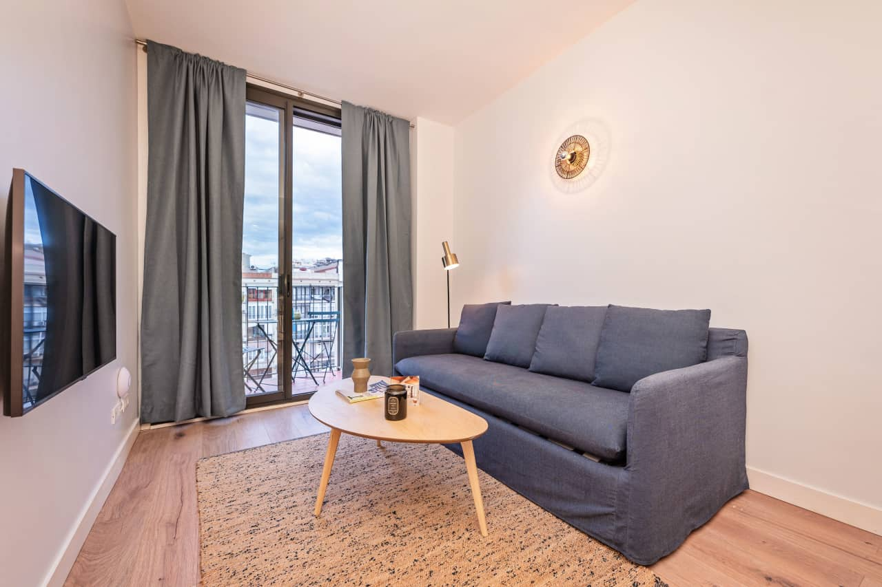 Bienvenue dans votre chez-vous idéal au cœur de Barcelone ! Cet appartement T2 lumineux et accueillant d'Acomodis offre un havre de paix à la fois cosy et élégant, baigné de lumière naturelle. Après une journée de découverte des merveilles de la ville, détendez-vous avec une boisson rafraîchissante sur le balcon ou profitez simplement du soleil méditerranéen.