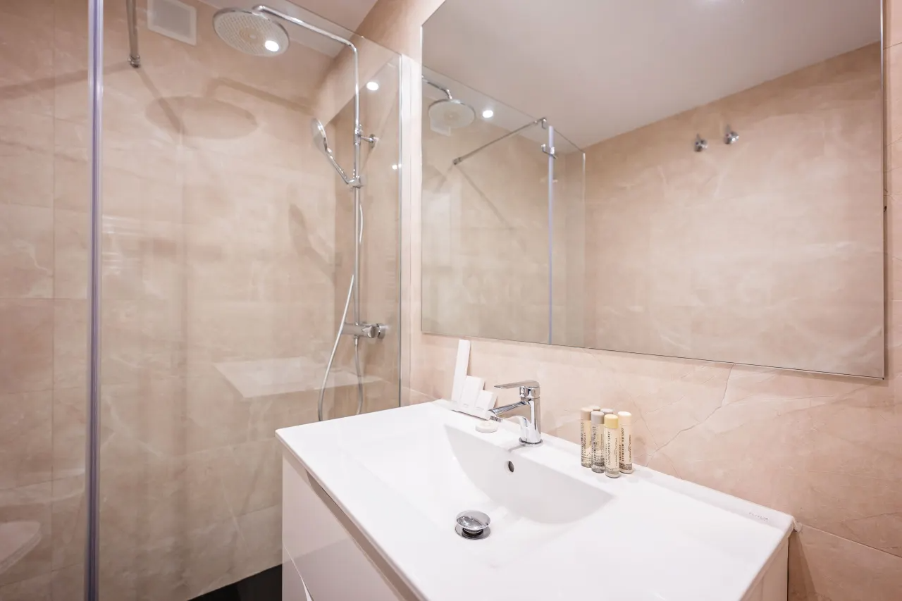 Designed by our expert interior designer, this three-bedroom retreat is spacious, bright, and features a modern aesthetic that prioritizes your comfort and style.