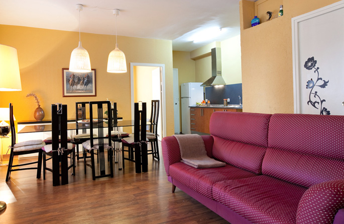 Ses pièces sont spacieuses, modernes et illuminés par la lumière naturelle qui entre à travers ses fenêtres. L’appartement est équipé pour que vous en profitiez selon votre envie. Vous pourrez vous relaxer dans sa balcon, préparer des délicieux plats gastronomiques dans sa cuisine ou vous divertir dans le salon avec la TV et le DVD. De plus, nous avons la connexion Wifi.