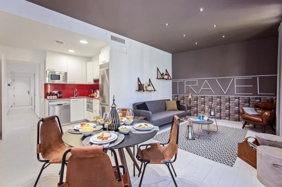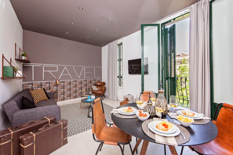 Moderne et chic, le superbe appartement Sants III de 2 chambres est situé dans le quartier historique de la Plaza España. Marchez jusqu'au parc fantaisiste Joan Miro (10 min) ou assistez à un match de football au célèbre stade Camp Nou (12 min). Dégustez des tapas et des ceviches espagnols dans les nombreux délicieux restaurants de la région, ou sirotez un expresso dans l'un des nombreux cafés-terrasses de la Plaza España. La station de métro Hostafrancs est proche (3 min).
