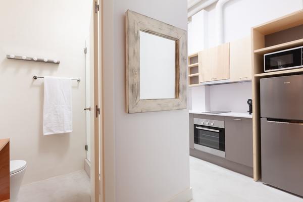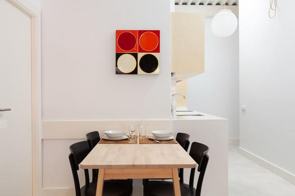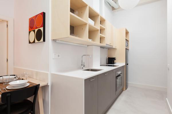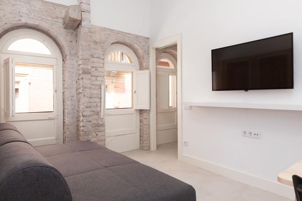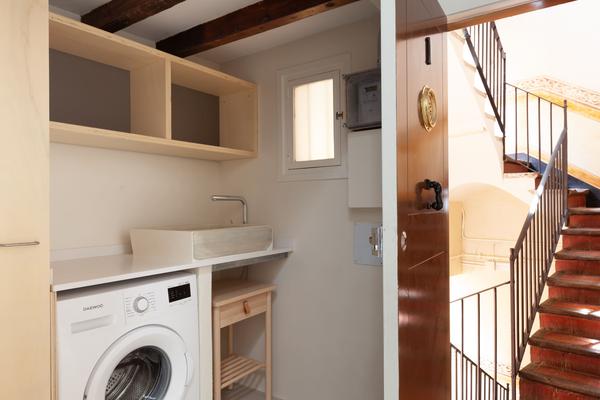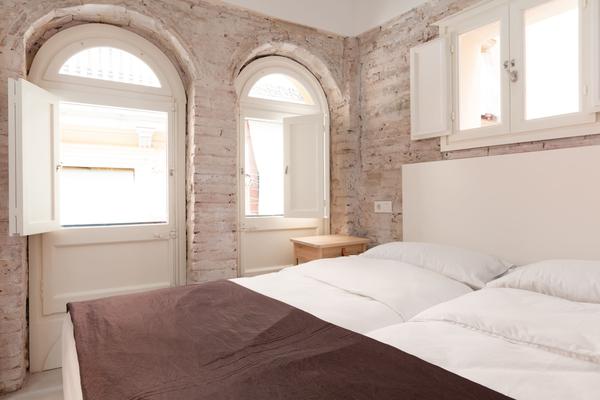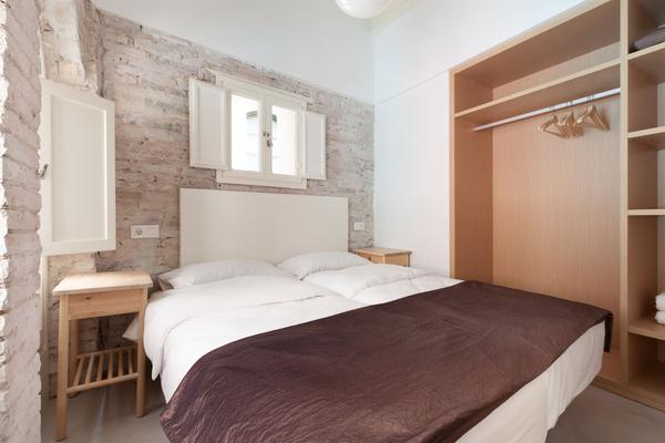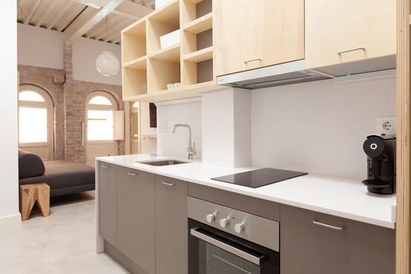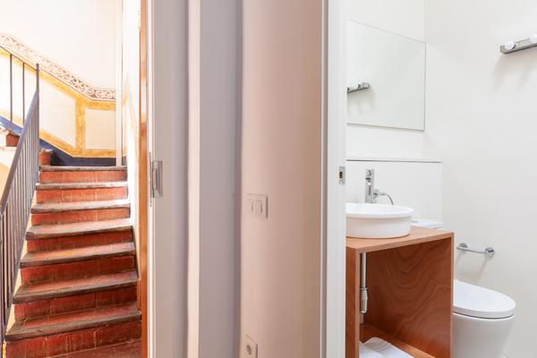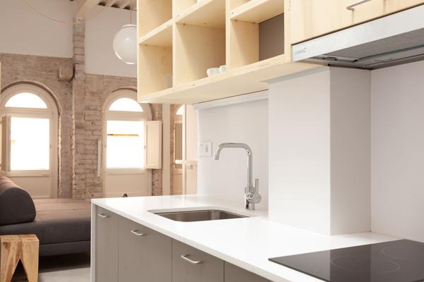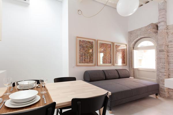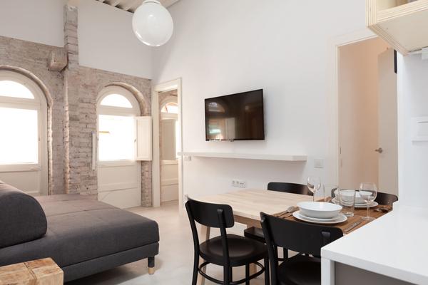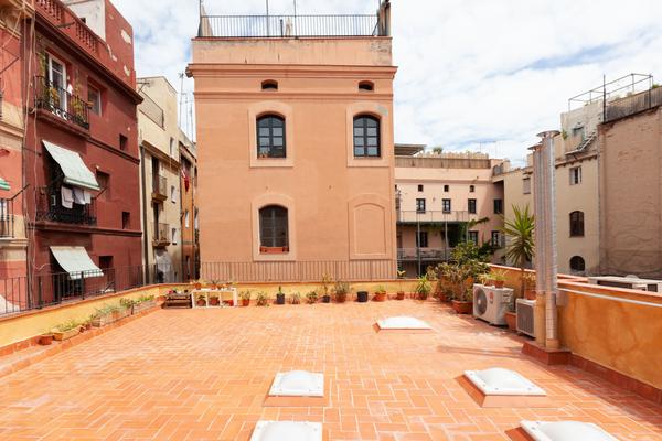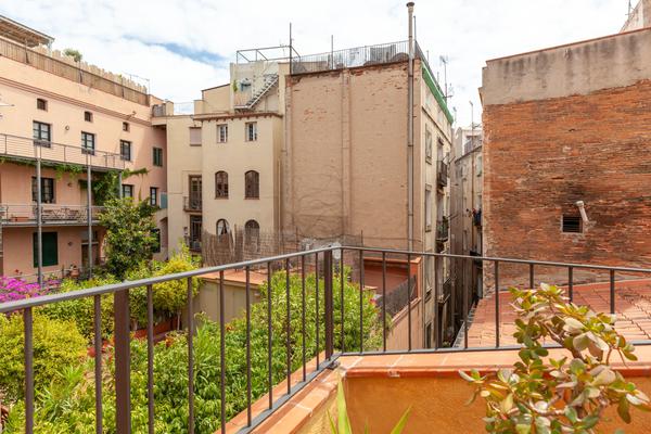 6 grandes fenêtres, 3 puits de lumière, des cours arrière calmes et lumineuses, des murs de briques traditionnels, des portes, un plafond très haut et des meubles et appareils modernes en font un lieu de séjour idéal en plein centre de Barcelone.