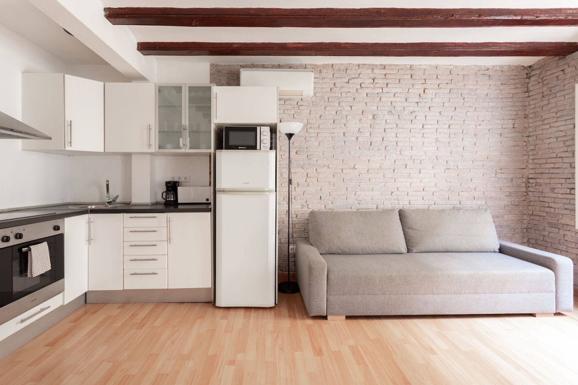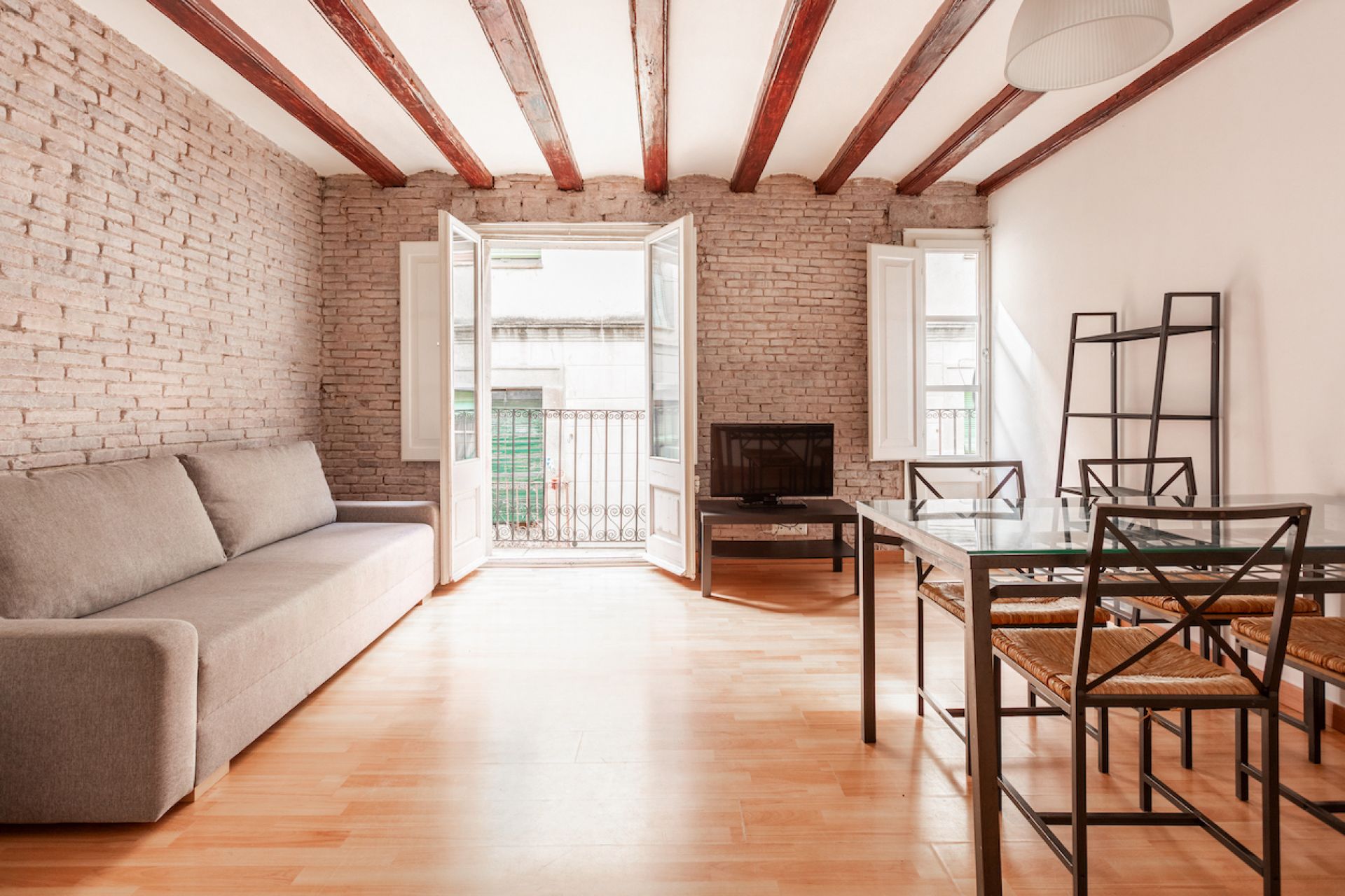 Notre logement vous assure votre repos à Barcelone. Une harmonie parfaite entre le rustique et le moderne. Ses murs en couleurs chaudes et claires se mélangent avec des détails en pierre argileuse qui, grâce à des baies vitrées bien situées, baignent l’ambiance d’agréable et abondante lumière solaire.
