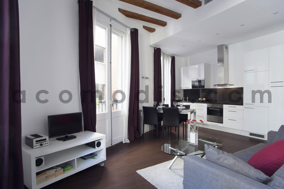 Vous aurez accès à la connexion Wifi, TV et DVD pour que vous vous relaxiez dans la meilleure ambiance. Les tonalités claires de l’appartement, assorties à la grande présence de lumière apportée par ses balcons, vous offrent l’espace idéal pour votre repos. Allez à la Plaça Catalunya -Place Catalogne- et à Las Ramblas et explorez la richesse de notre architecture.