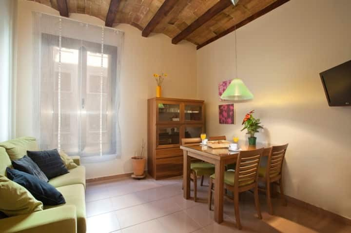 Ce logement fait 55 m2 et se trouve tout près de Las Ramblas et les principales constructions gothiques. Il est pour héberger jusqu’à 4 personnes