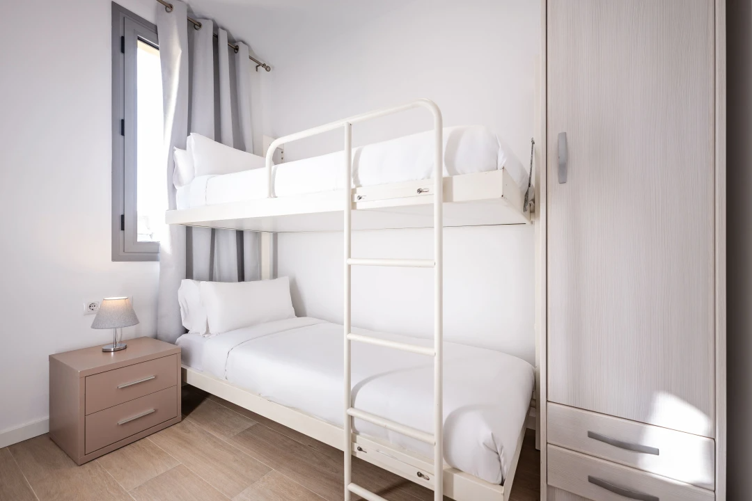 1 double bed, 2 individual beds, bunk beds, 1 sofa bed