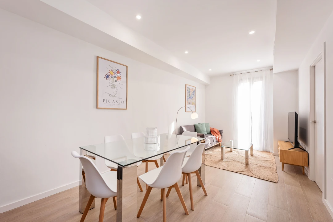 Experience Barcelona like a true local in this stylish three-bedroom apartment. Designed with a contemporary touch, it offers a warm and inviting atmosphere. Thoughtfully chosen furnishings and soft, harmonious colors create a relaxing, home-like retreat.