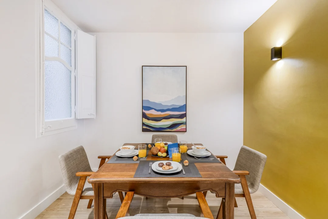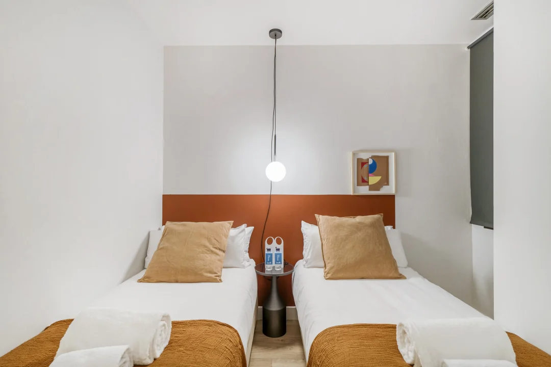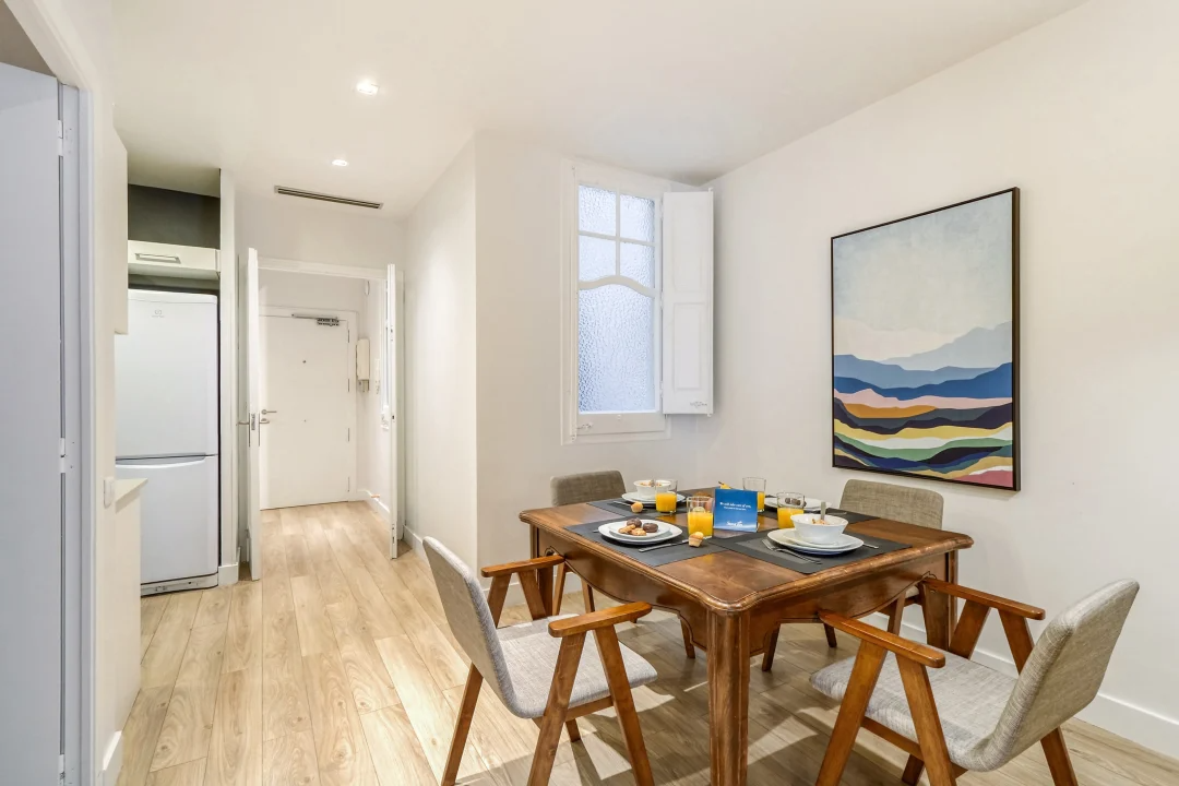 Sepulveda 1A is a stunning apartment located in the heart of the L’Eixample neighborhood, renowned for its authentic atmosphere and vibrant Catalan culture. Featuring a charming blend of pine flooring, soft pastel tones, and warm beige hues, this two-bedroom apartment offers a cozy and inviting space you'll love calling home. The fantastic bedroom balconies provide a wonderful view of the lively surroundings.