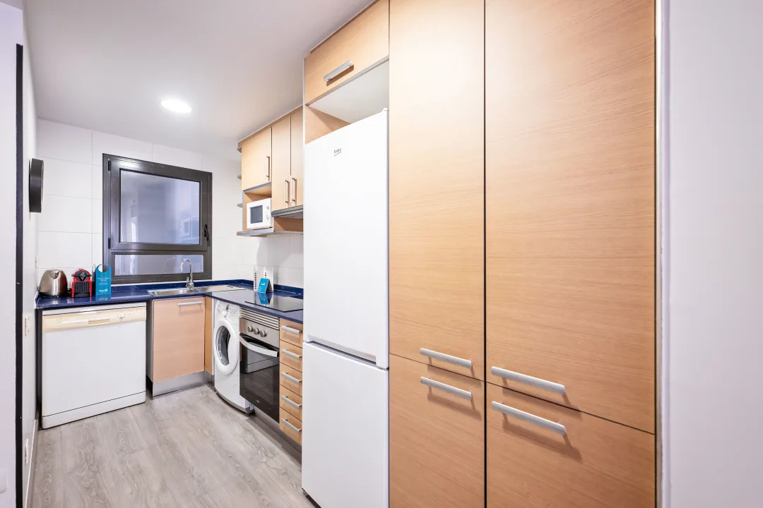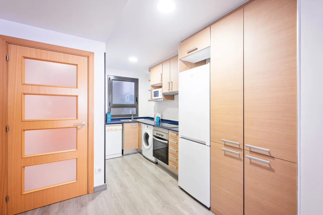 Denne herlige leiligheten med to soverom tilbyr en koselig og innbydende atmosfære, badet i naturlig lys. Det fullt utstyrte kjøkkenet er perfekt for å tilberede familiemåltider, noe som gjør den til et utmerket valg for både korte og lange opphold.