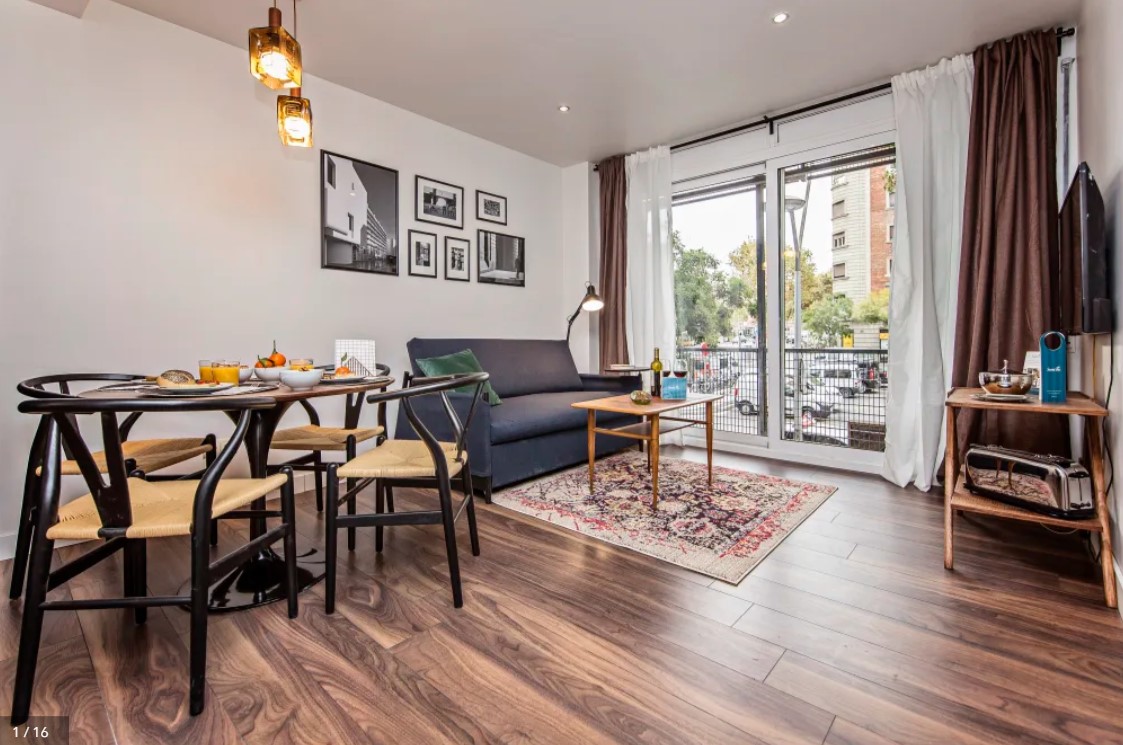 Popular points of interest near the apartment include Sants Railway Station, Boqueria Market, and Palau Sant Jordi. The nearest airport is Barcelona-El Prat Airport, 6.8 miles from the apartment.
