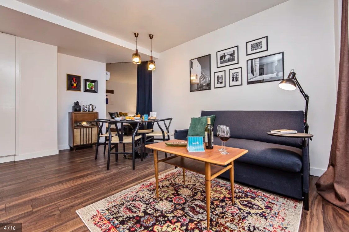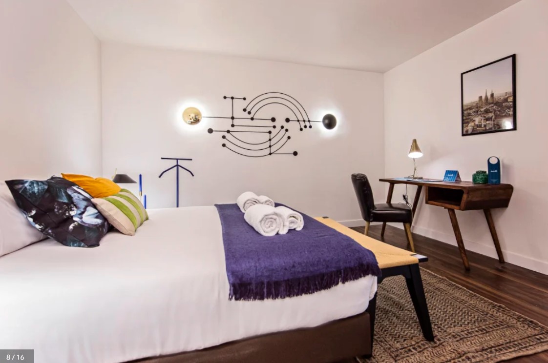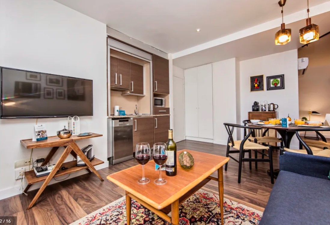 This Spanish-inspired apartment has been decorated by our local interior designer for a taste of Barcelonian culture. Vintage-style furniture and rugs give the apartment a homey feel, while the state-of-the-art kitchen has everything you need to prepare a tapas feast. Two plush bedrooms feature bright throw pillows and plenty of colour.