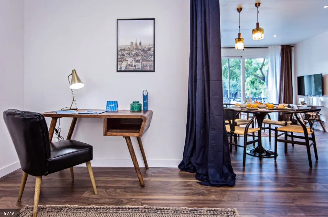 Located in the central Plaza Espana neighbourhood, the 2-bedroom Plaza Espana Fira vacation apartment is your ticket to an authentic Barcelona experience. The apartment is surrounded by some of Barcelona’s many attractions, along with the city’s best shopping, restaurants, and entertainment venues. You’ll find yourself within walking distance of the Archeology Museum of Catalonia (8 min. walk), the Palau Nacional Art Museum (15 min), and the Magic Fountain (9 min). Bus stops are just outside, and the Plaza Espana metro is close (4 min).