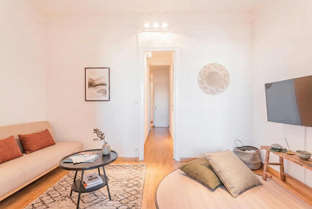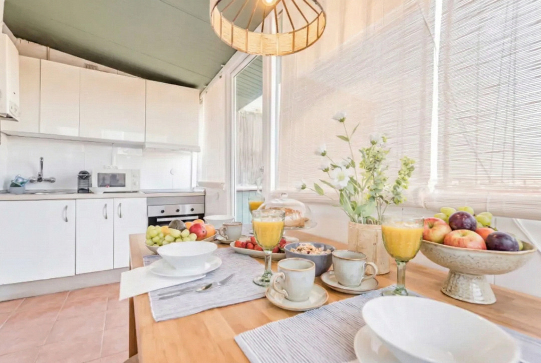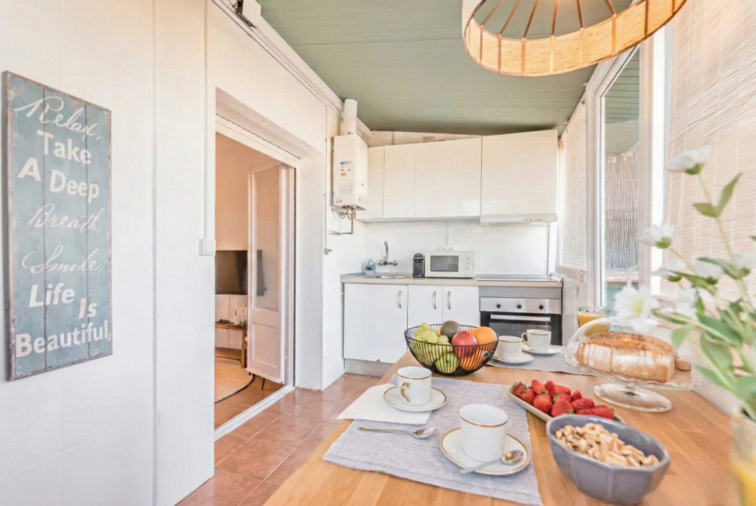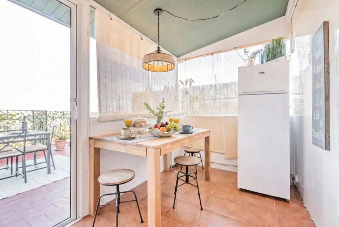 Step into this charming one-bedroom apartment and be greeted by an abundance of natural light. The carefully chosen, comfortable furnishings and the beautiful blend of colors create a truly welcoming and relaxing atmosphere. You'll quickly find the sunny terrace becoming one of your favorite spots to unwind.