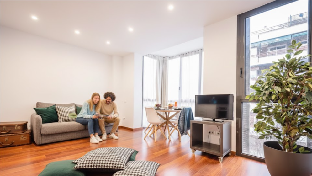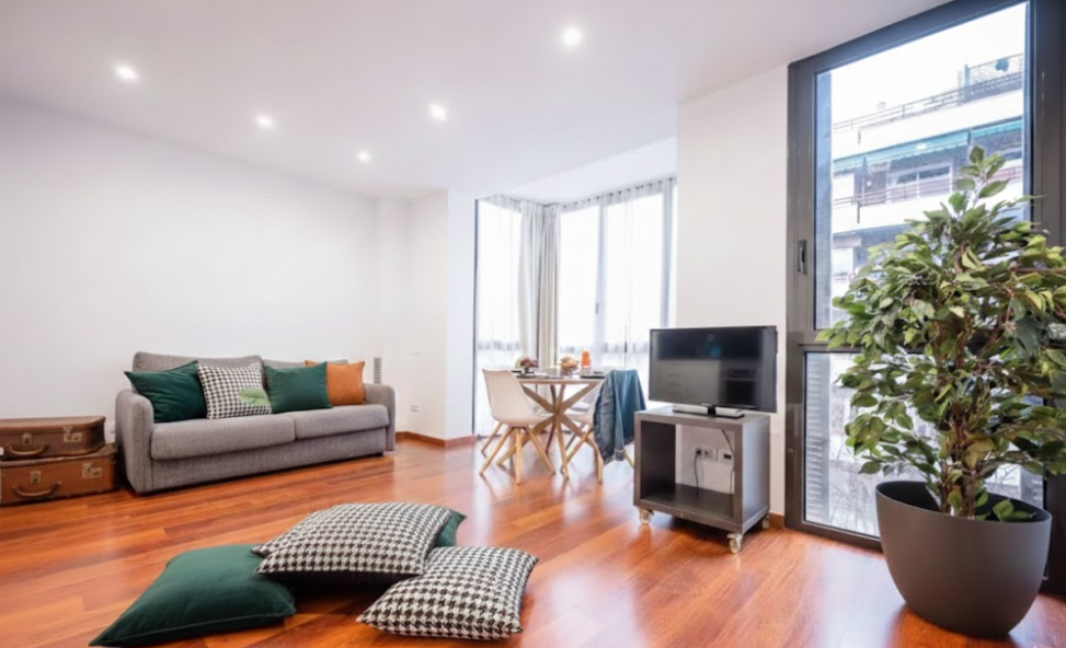 This cosy two-bedroom Acomodis apartment offers a warm and inviting ambience, with ample natural light from the window.