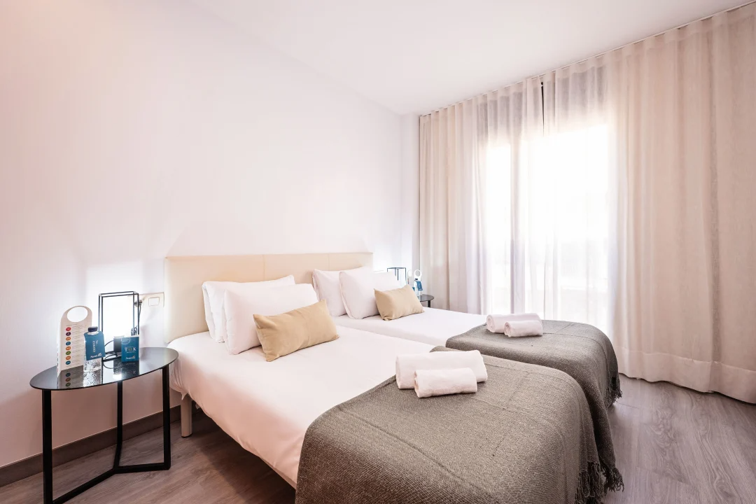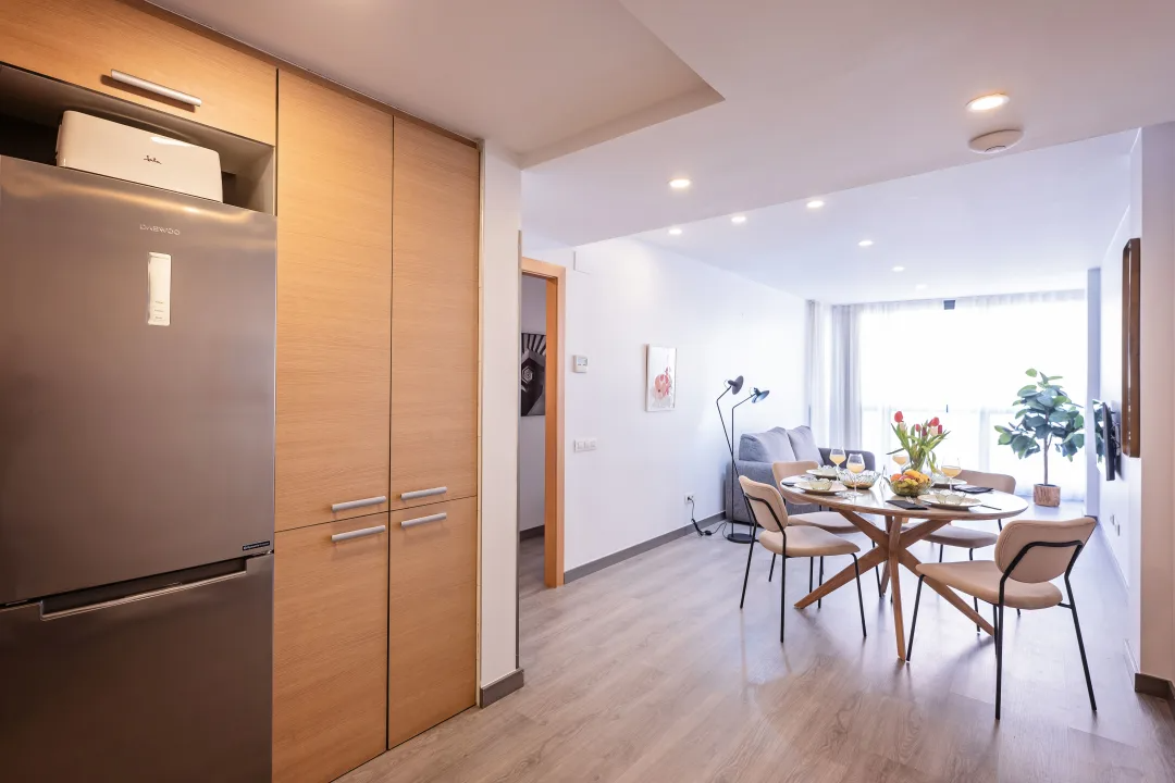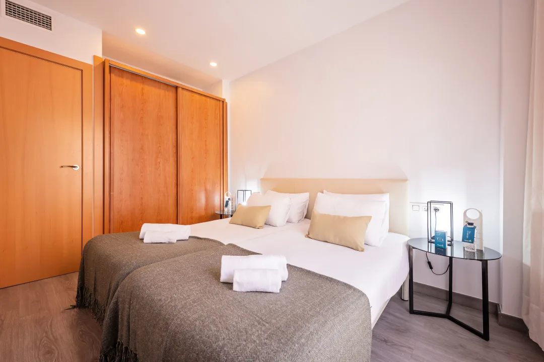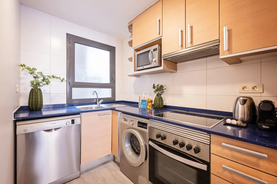 This charming two-bedroom apartment provides a warm and welcoming atmosphere, filled with natural light. The fully equipped kitchen is perfect for preparing family meals, making it a great choice for both short and long stays.