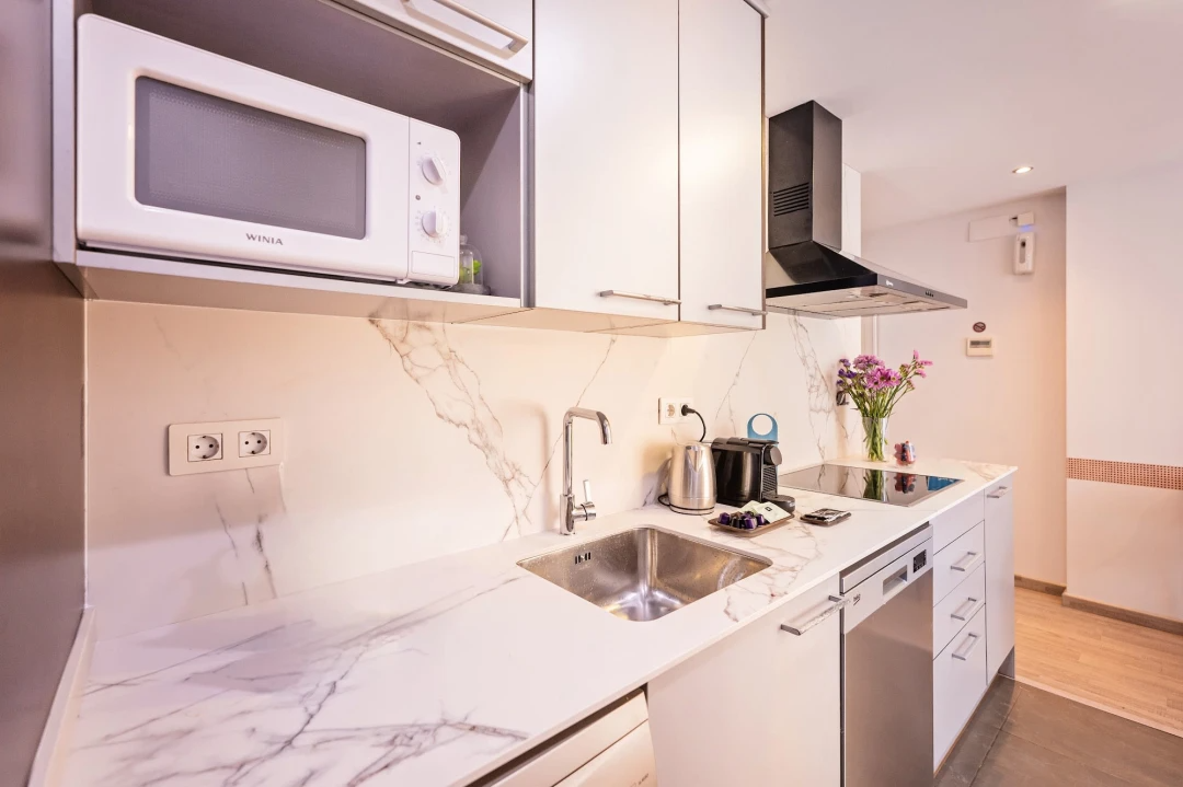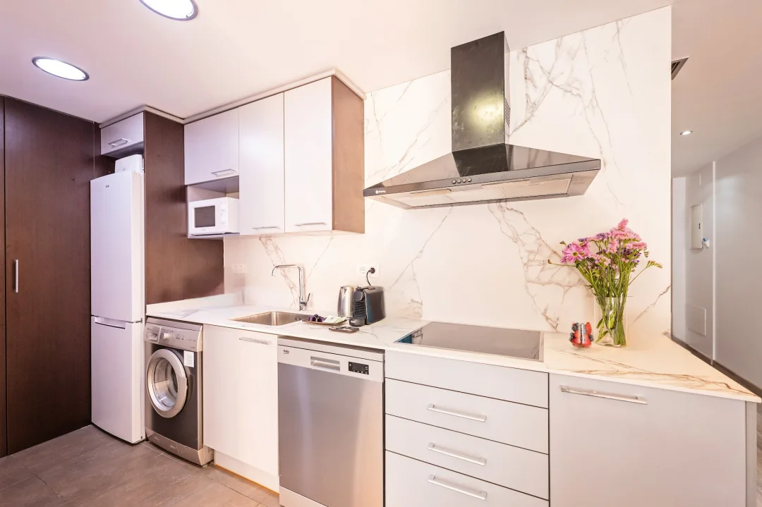 - Glass-ceramic hob, Freezer, Electric oven, Express coffe maker, Electric Kettle, Refrigerator, Dishwasher, Microwave, Toaster