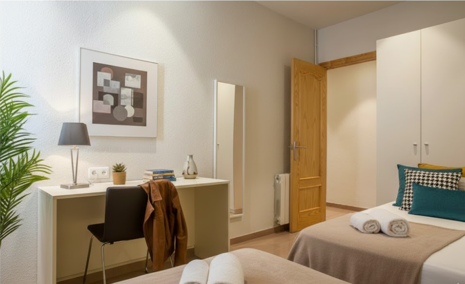 Si buscas un alojamiento amplio y céntrico, este apartamento te encantará. Cuenta con 110 metros cuadrados en los que se reparten dos habitaciones dobles y una individual. Se ubica en el centro histórico de Barcelona y es capaz de alojar cómodamente a grupos de hasta seis personas.