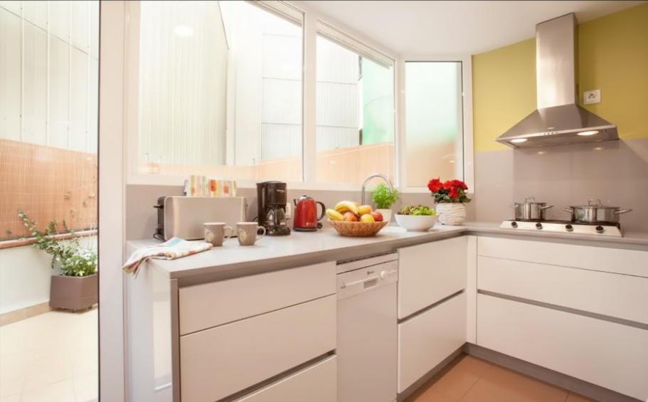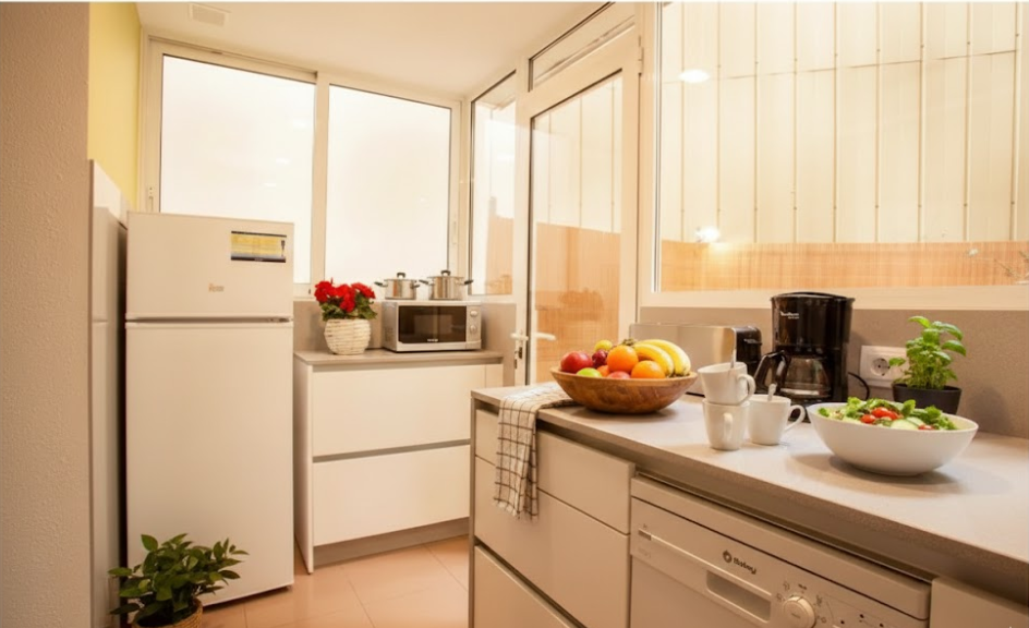 - Hervidor de agua (Kettle), Cocina a gas, Congelador, Cafetera tradicional, Tetera tradicional, Nevera, Lavavajillas, Microondas, Tostadora