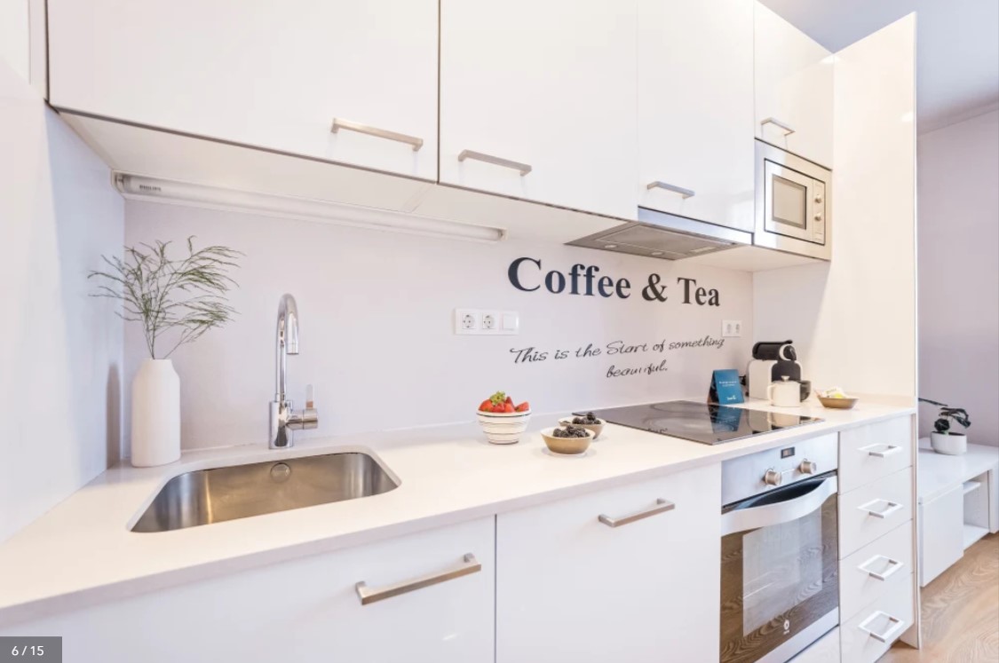 - Cocina vitrocerámica, Congelador, Horno eléctrico, Nevera, Microondas, Tostadora, Cafetera eléctrica