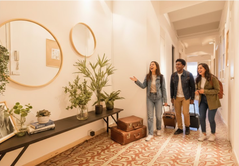 - Check in: de 16h a 24h pero hay flexibilidad, dependerá de si hay algún huésped en el apartamento el mismo día del check in o no. En cualquier caso, solo podremos confirmar si puedes hacer el check-in antes de las 16h de la noche anterior al día de tu check-in. En cuanto al equipaje, puede dejarlo en nuestro lobby, que está abierto de lunes a viernes de 9 a 19 h y sábados y domingos de 11 a 19 h.