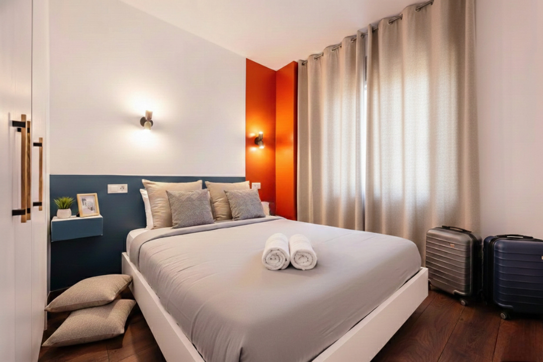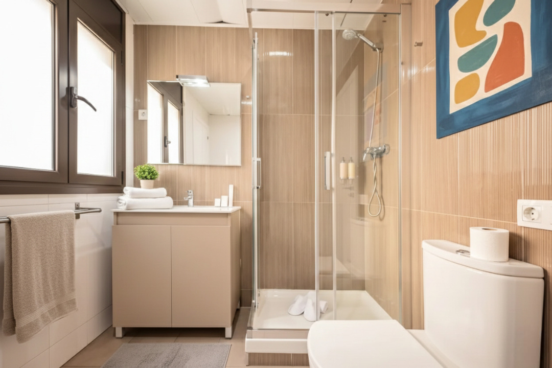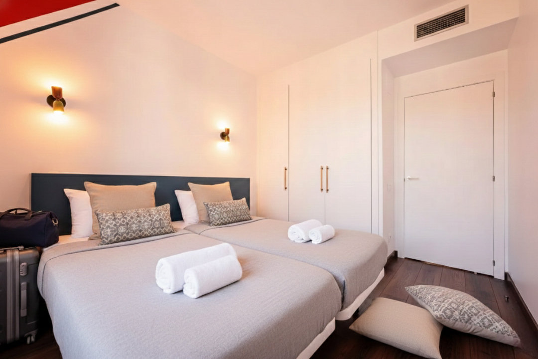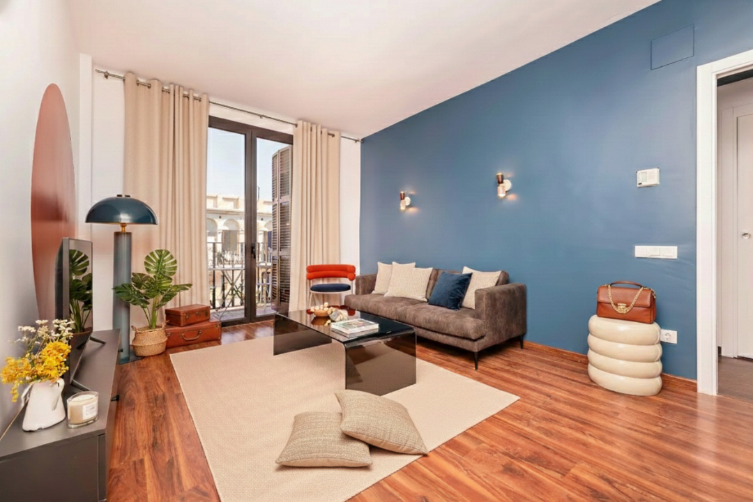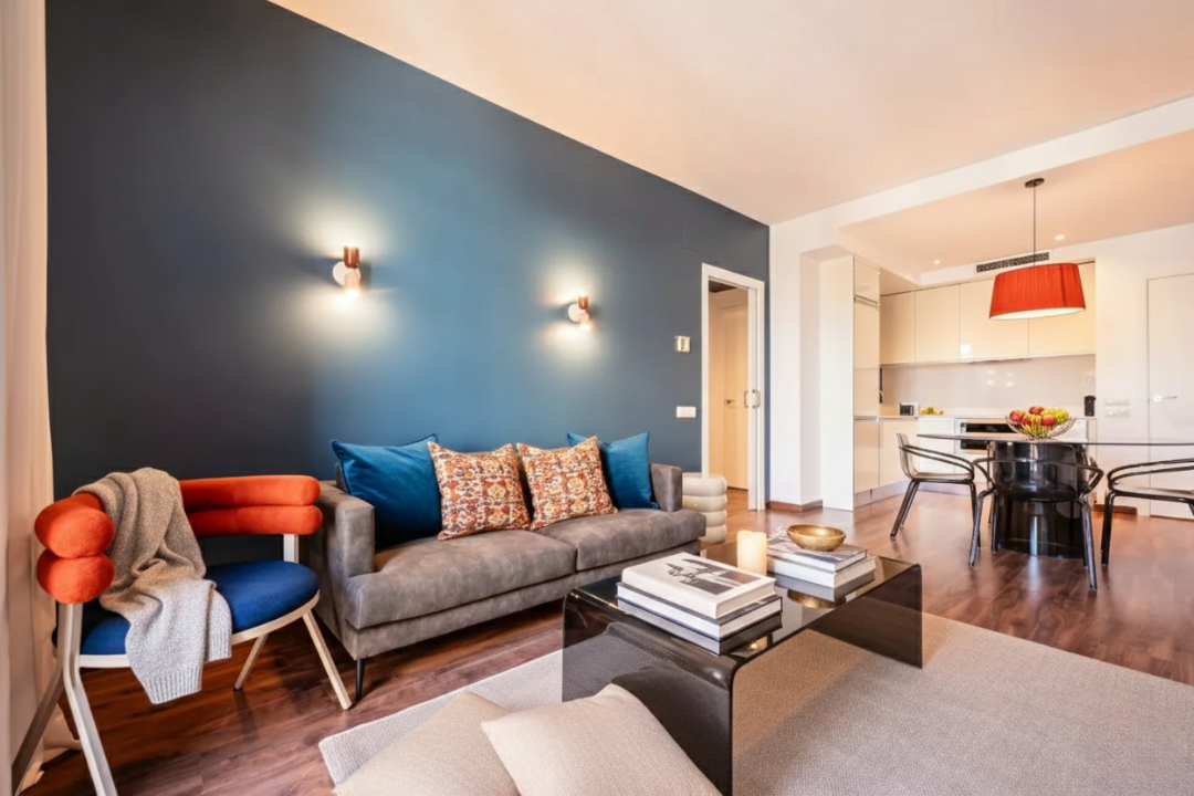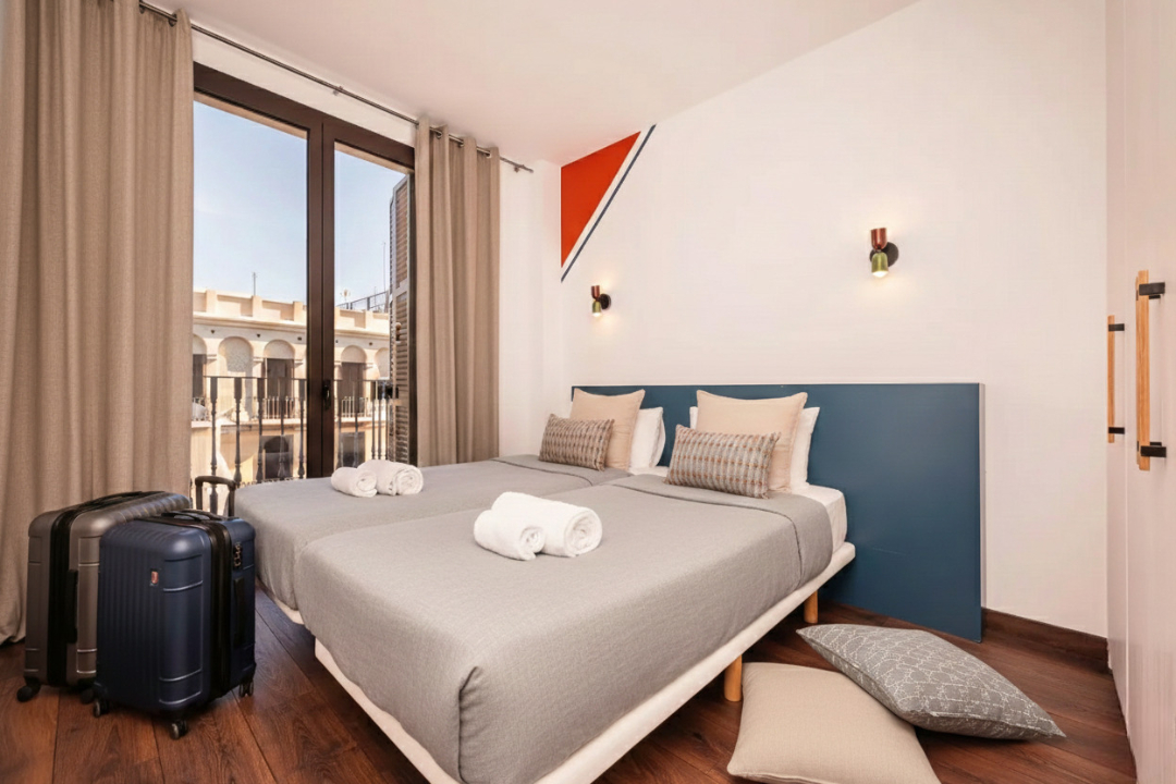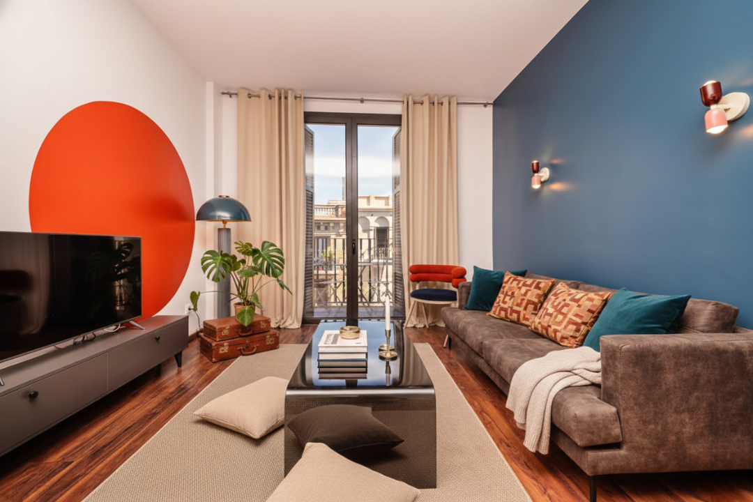 Ce spacieux appartement de 2 chambres avec 2 salles de bains offre une ambiance chaleureuse et accueillante, avec beaucoup de lumière naturelle provenant des fenêtres. Détendez-vous avec une boisson rafraîchissante ou profitez du soleil sur le grand patio après une journée de visites. La cuisine est entièrement équipée et idéale pour préparer des repas en famille. Situé au cœur de Barcelone, de nombreux sites célèbres de la ville comme la Sagrada Familia et la Plaza Catalunya sont accessibles à pied.
