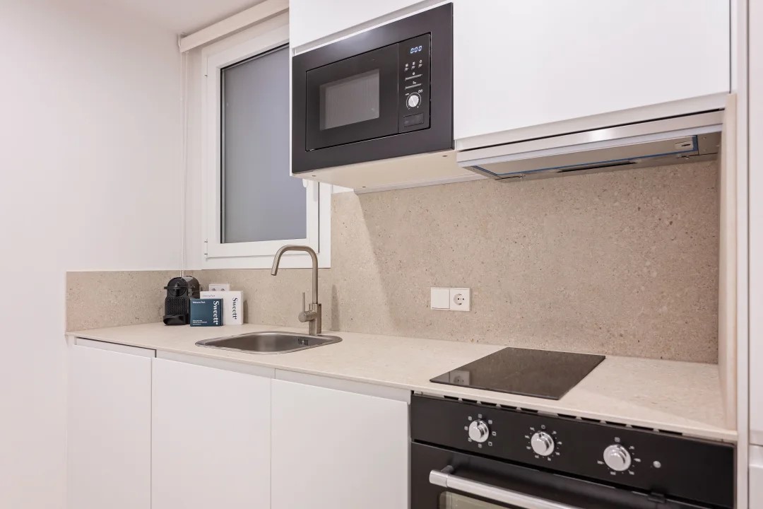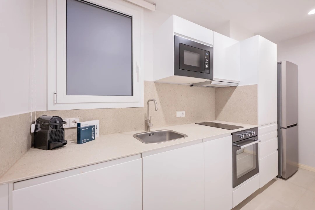 The Gran Via two-bedroom Acomodis apartment invites you to live like a true local. Recently re-designed by our local interior designer this charming place will make you feel at home. The decor and the thoughtfully selected accessories perfectly reflect the area's unique characteristics. The fully equipped kitchen is perfect for preparing a quick snack after a day of exploring or practising your Spanish cooking skills.