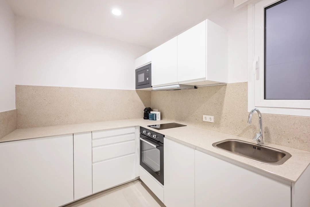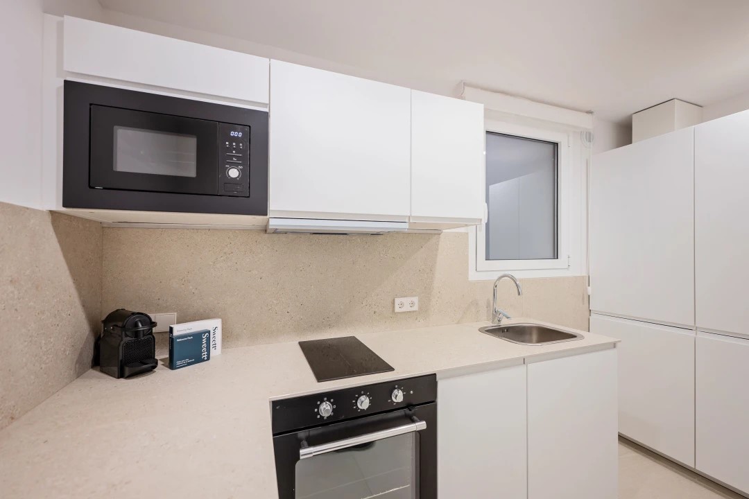 The Gran Via two-bedroom Acomodis apartment invites you to live like a true local. Recently re-designed by our local interior designer this charming place will make you feel at home. The decor and the thoughtfully selected accessories perfectly reflect the area's unique characteristics. The fully equipped kitchen is perfect for preparing a quick snack after a day of exploring or practising your Spanish cooking skills.