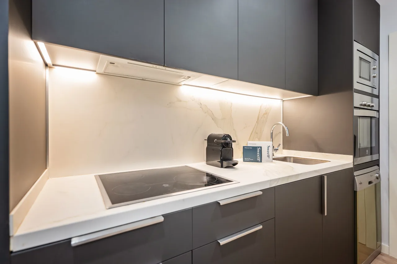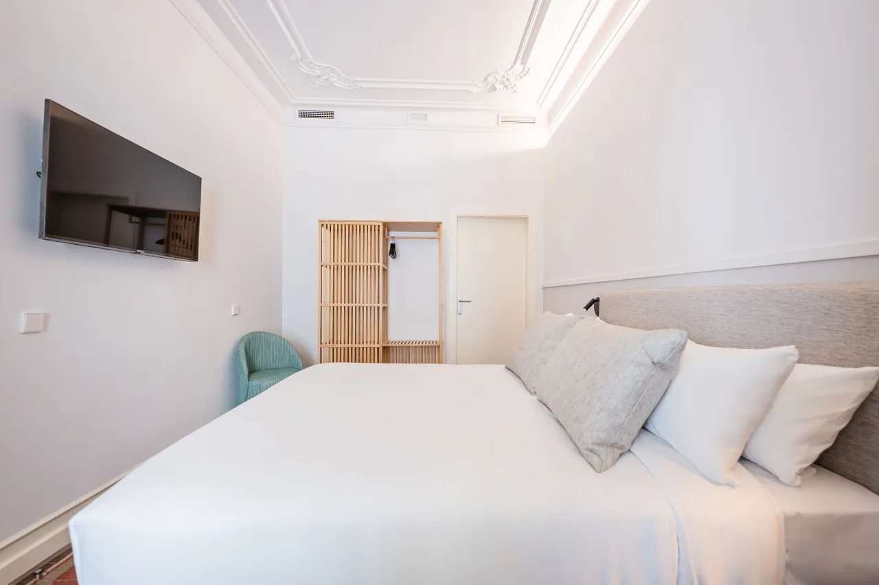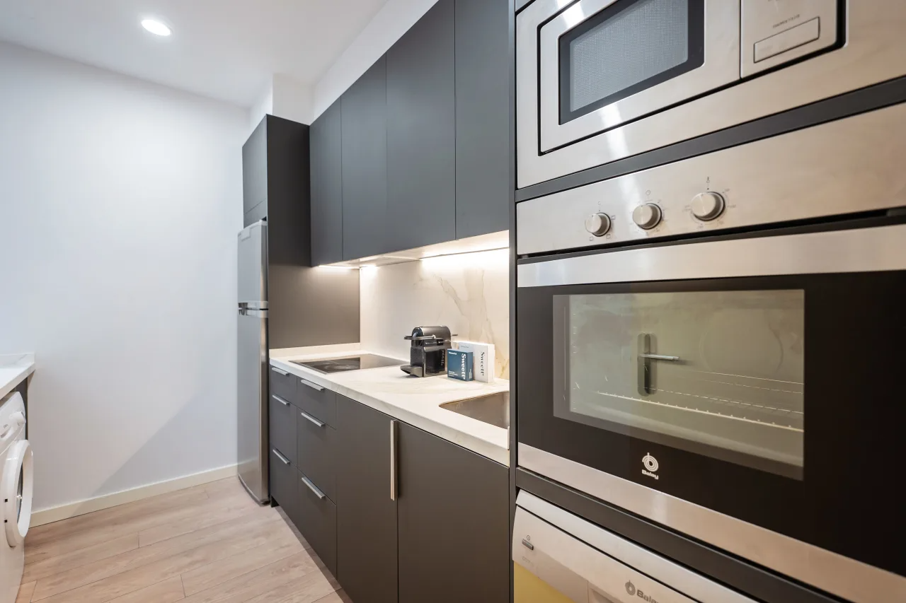 The Gran Via two-bedroom Acomodis apartment offers you the chance to experience the city like a true local. Recently redesigned by our talented local interior designer, this charming space will make you feel right at home. The decor and carefully chosen accessories beautifully capture the unique character of the area. The fully equipped kitchen is perfect for whipping up a quick snack after a day of exploring or honing your Spanish cooking skills.
